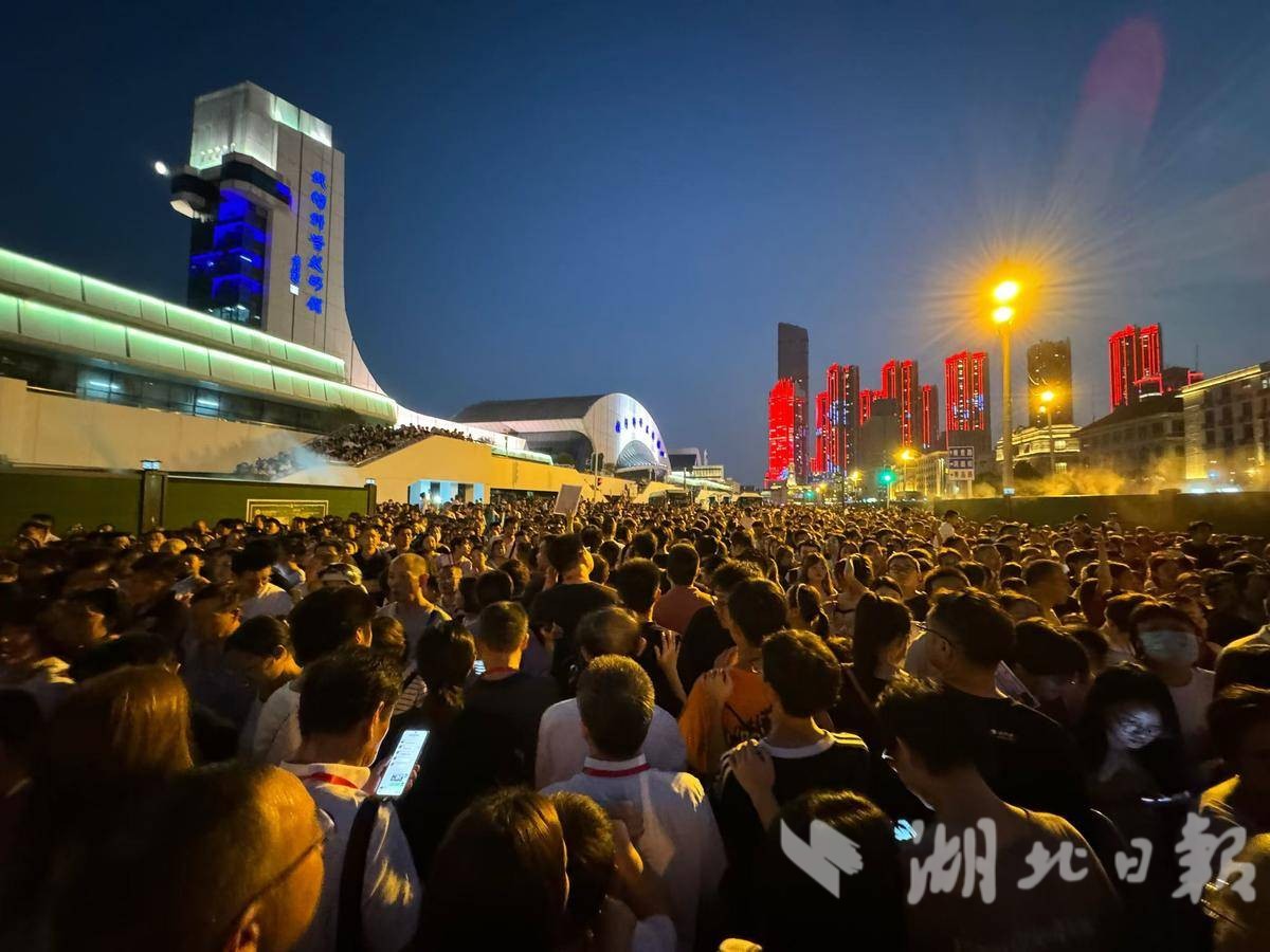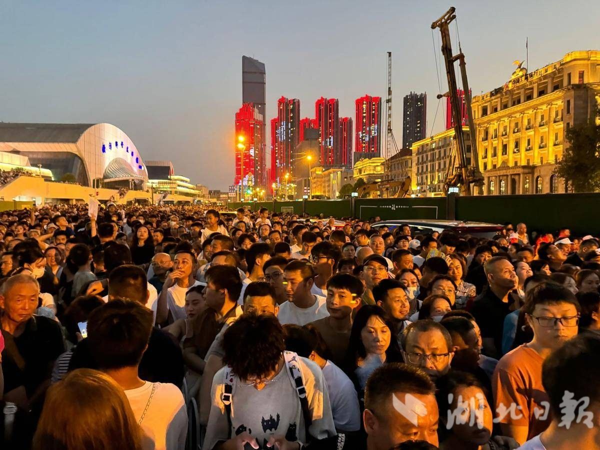 9月14日晚,長江文化藝術季在武漢璀璨開幕,市民們來到江灘,近距離觀賞開幕式盛況。(湖北日報全媒記者 李溪 攝)