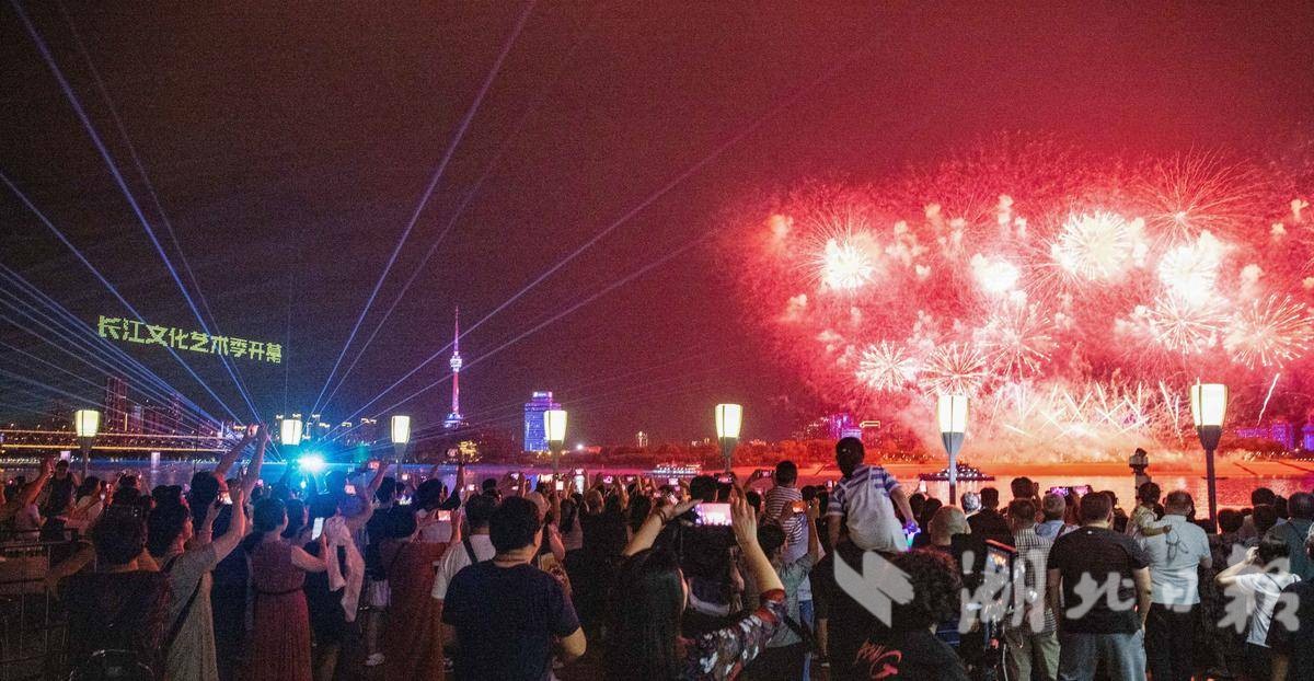 9月14日晚,長江文化藝術季在武漢璀璨開幕,漢口江灘人流如織,熱鬧非凡。(湖北日報全媒記者 李溪 攝)