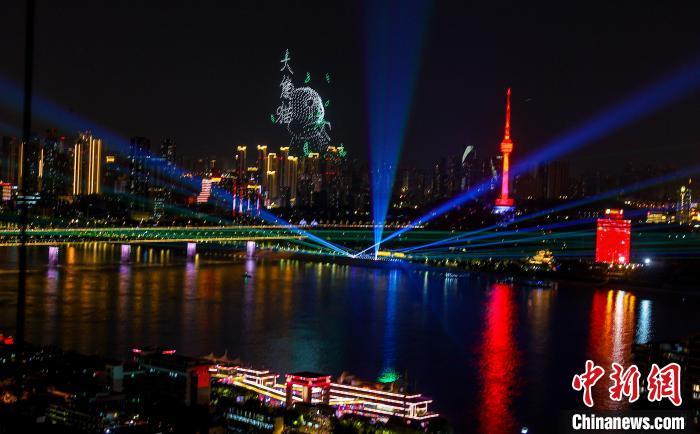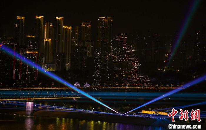 9月14日晚,長江文化藝術(shù)季開幕式在湖北武漢舉行。開幕式以一場點亮長江的大型沉浸式光影秀,著重突出文化和科技融合的特色,聚焦上海、江蘇、浙江、安徽、江西、湖南、重慶、四川、貴州、云南、西藏、青海等長江流域13個省區(qū)市的特色文化元素,上演“以天為幕、以城為景、以長江為舞臺”的璀璨景象,展現(xiàn)長江的風(fēng)景之美、藝術(shù)之美、人文之美、發(fā)展之美。圖為無人機組成的“洪崖洞”造型。中新社記者 張暢 攝