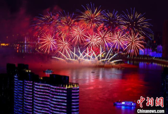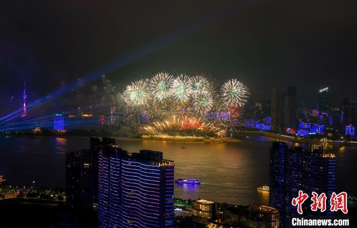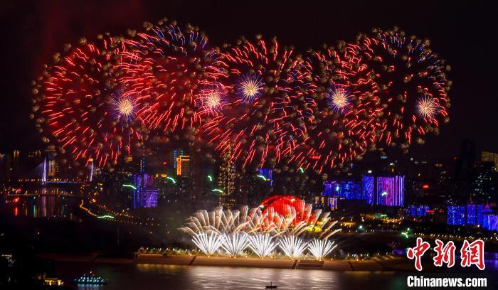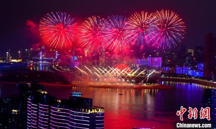 9月14日晚,長江文化藝術(shù)季開幕式在湖北武漢舉行。開幕式以一場點亮長江的大型沉浸式光影秀,著重突出文化和科技融合的特色,聚焦上海、江蘇、浙江、安徽、江西、湖南、重慶、四川、貴州、云南、西藏、青海等長江流域13個省區(qū)市的特色文化元素,上演“以天為幕、以城為景、以長江為舞臺”的璀璨景象,展現(xiàn)長江的風(fēng)景之美、藝術(shù)之美、人文之美、發(fā)展之美。圖為煙花映照夜空。中新社記者 張暢 攝
