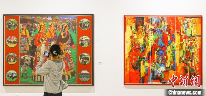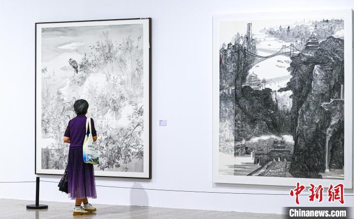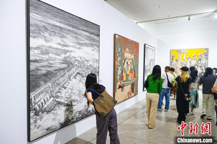 9月15日,“新象長江”主題美術(shù)作品展覽在湖北美術(shù)館開幕。作為長江文化藝術(shù)季10項主體活動之一,來自長江流域十三省份的美術(shù)名家通過一幅幅美術(shù)作品展現(xiàn)新時代長江的壯麗風(fēng)貌。共展出112件美術(shù)作品,作品涵蓋中國畫、油畫、版畫、水彩、漆畫等多種繪畫門類。圖為觀眾參觀美術(shù)展覽。中新社記者 張暢 攝
