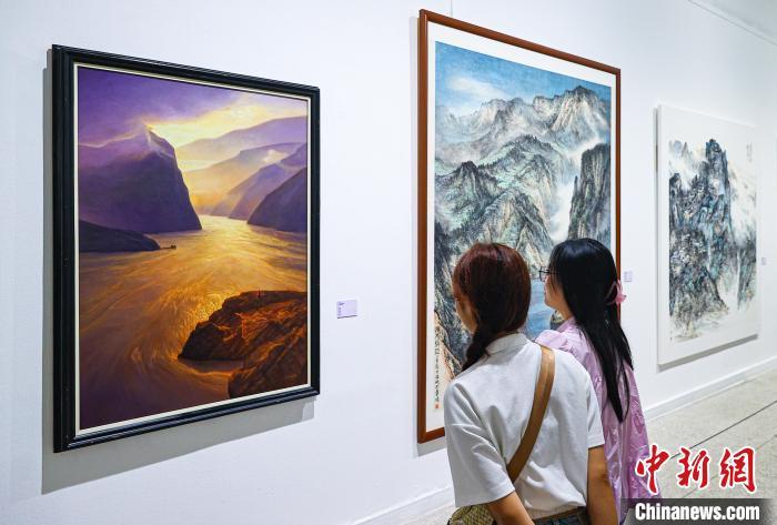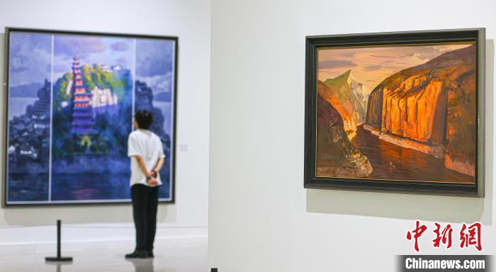 9月15日,“新象長江”主題美術(shù)作品展覽在湖北美術(shù)館開幕。作為長江文化藝術(shù)季10項主體活動之一,來自長江流域十三省份的美術(shù)名家通過一幅幅美術(shù)作品展現(xiàn)新時代長江的壯麗風(fēng)貌。共展出112件美術(shù)作品,作品涵蓋中國畫、油畫、版畫、水彩、漆畫等多種繪畫門類。圖為展覽展出的朱沙創(chuàng)作的油畫 《夔門夕照》。中新社記者 張暢 攝
