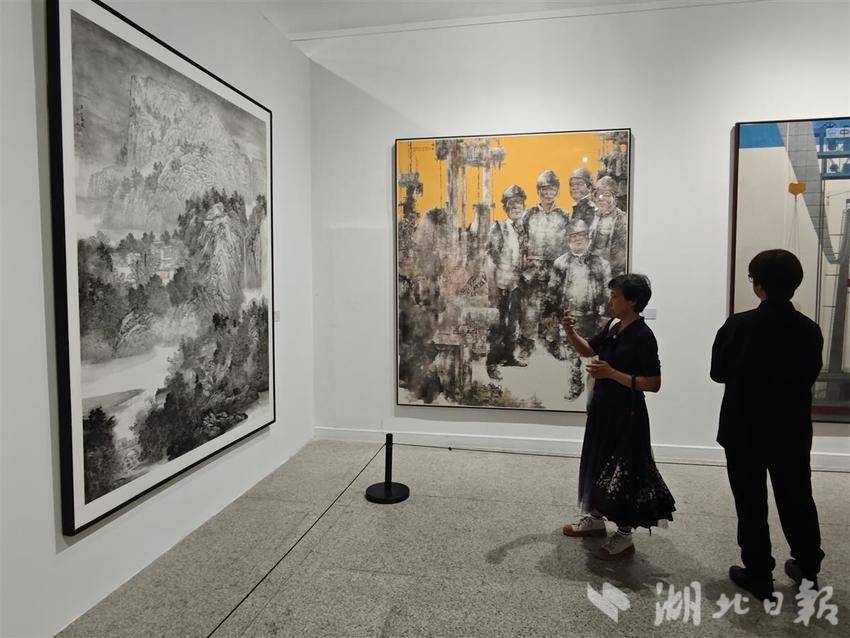 湖北大學(xué)美術(shù)師范專業(yè)學(xué)生張?jiān)其空f(shuō),現(xiàn)場(chǎng)觀展能夠更直觀地感受到不同畫種在技術(shù)運(yùn)用上的特點(diǎn),她將喜歡的作品拍照留存,“我喜歡顏色亮麗、形式新穎的作品,讓人眼前一亮。”