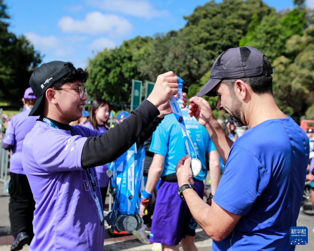 這是9月15日拍攝的悉尼馬拉松完賽獎牌。新華社記者 馬平 攝