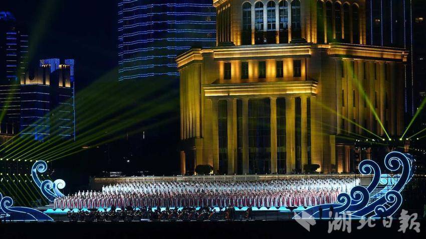 在開幕式的尾聲,東方交響樂團(tuán)與聲樂系合唱團(tuán)在激光秀與合唱《我的祖國》中,與武漢長江大橋的璀璨光華一同向偉大祖國送上生日的問候與祝愿。