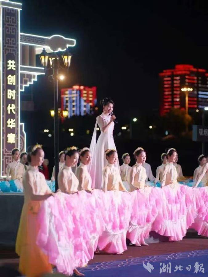 演藝學(xué)院青年教師易浩在戲曲歌舞《唱戲吧》中擔(dān)任領(lǐng)唱,以“戲曲文化”和“群眾文化”為主軸,展現(xiàn)武漢“一座碼頭皆是戲”的獨(dú)特魅力。
