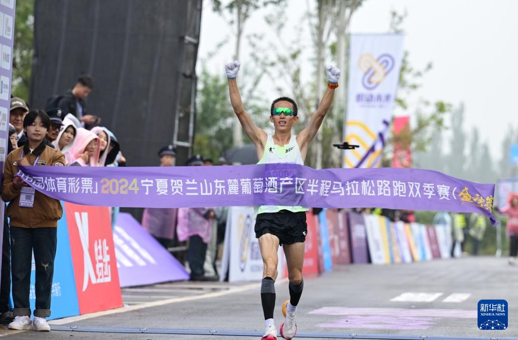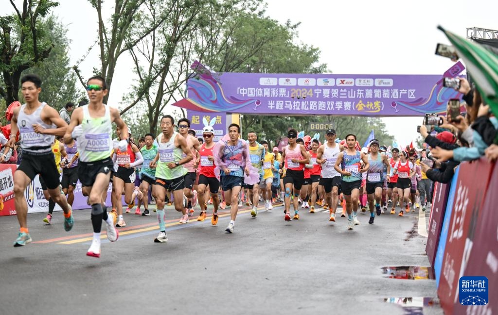 當日,2024寧夏賀蘭山東麓葡萄酒產區半程馬拉松路跑雙季賽(金秋賽)在賀蘭山下鳴槍開跑,共吸引約6000名跑者參加。