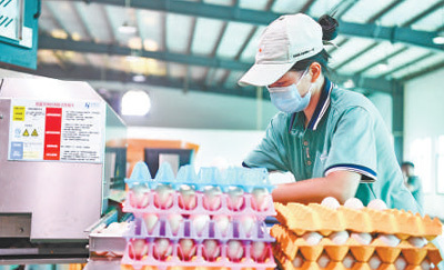 在海南省澄邁縣的海南農(nóng)墾海津益佳牧業(yè)有限公司里,工作人員在打包雞蛋。
