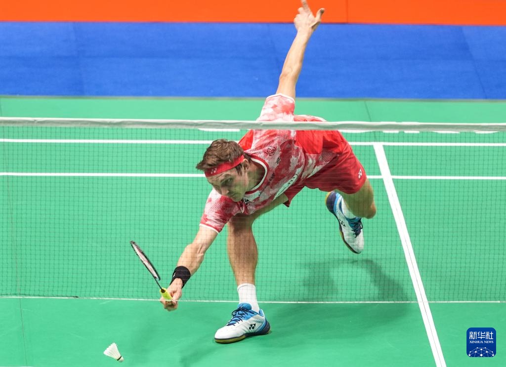 當(dāng)日,在江蘇省常州市舉行的2024中國羽毛球公開賽男子單打首輪比賽中,中國選手雷蘭曦2比1戰(zhàn)勝丹麥選手安賽龍,晉級次輪。