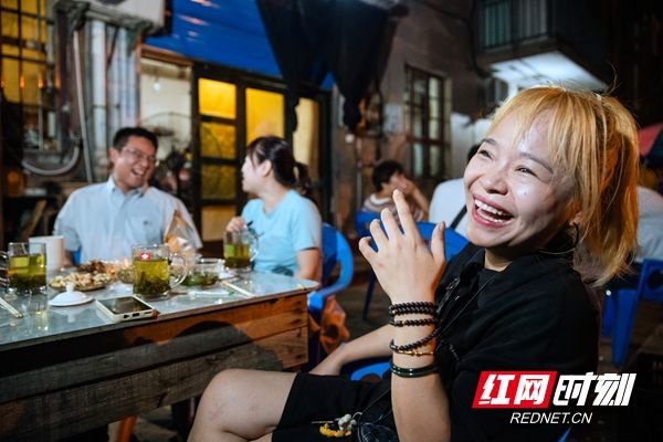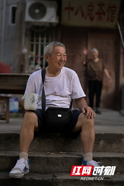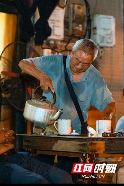 2016年,湘潭將窯灣打造成歷史文化街區(qū)之后,這里逐漸成為市民、游客的網(wǎng)紅打卡處。離著200米的十八總茶館也受了益。不僅吸引了很多大學(xué)生、年輕人、外地游客,還有外國(guó)人,老賀喜歡跟他們交談。他記得,前一陣有一個(gè)修橋的工程師來茶館喝茶,就被老賀的精神所感染,那人說“這個(gè)年紀(jì)還在努力奮斗,我們還有什么理由去躺平去懈怠。”