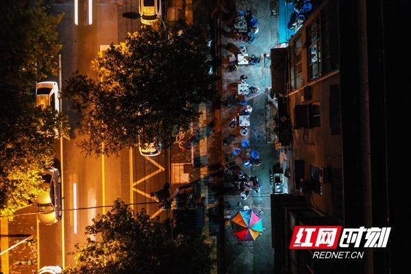 入夜,人民路依舊喧囂,茶館依舊熱鬧。
