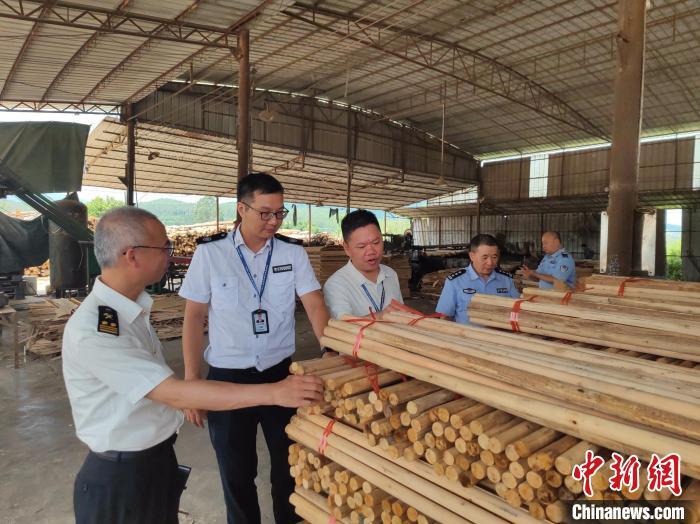 江門市執法人員檢查涉木企業。廣東省林業局 供圖