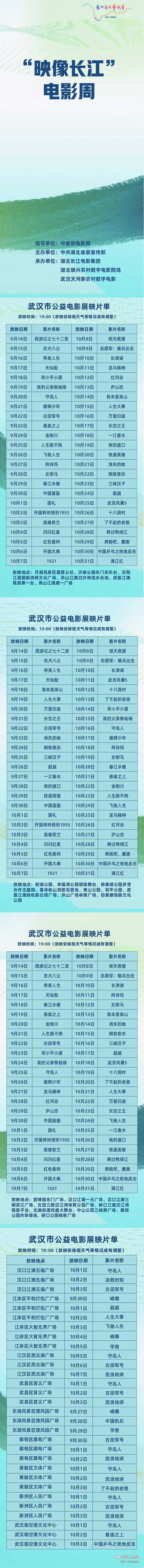 “映象長江”電影周,武漢市放映點(diǎn)、放映影片和放映時(shí)間表如下: