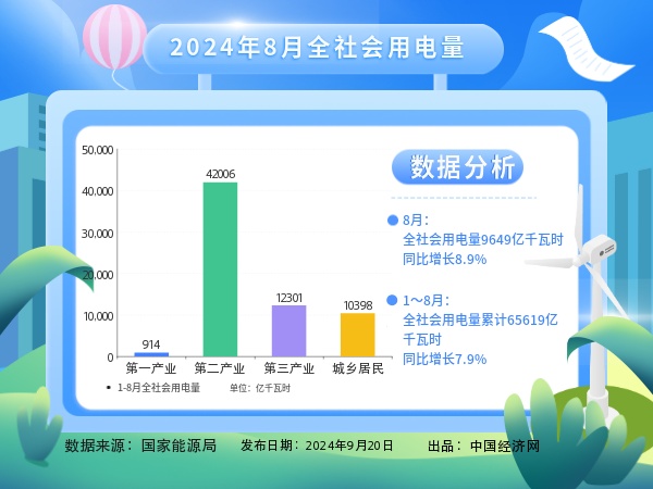 中國經濟網北京9月20日訊(記者王婉瑩)國家能源局今日發(fā)布8月份全社會用電量等數(shù)據。8月份,全社會用電量9649億千瓦時,同比增長8.9%。