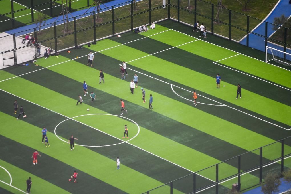 穆罕默德提到的足球元素公園,是位于延邊州首府延吉市的阿里郎足球公園,2022年延邊州成立70周年的重點(diǎn)工程,如今已成地標(biāo)建筑。足球搖籃、馬賽回旋網(wǎng)、橫傳翹板……14.9萬平方米的園區(qū)無論功能劃分還是器械命名,都透著濃郁的足球元素。園區(qū)南側(cè)設(shè)有2個(gè)七人制球場、6個(gè)五人制球場,每逢工作日下班后和節(jié)假日,這里經(jīng)常“一場難求”。