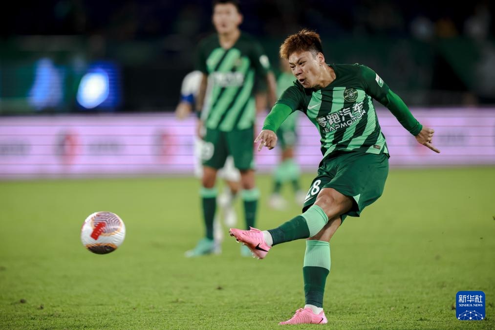 9月22日,浙江隊球員岳鑫在比賽中射門。