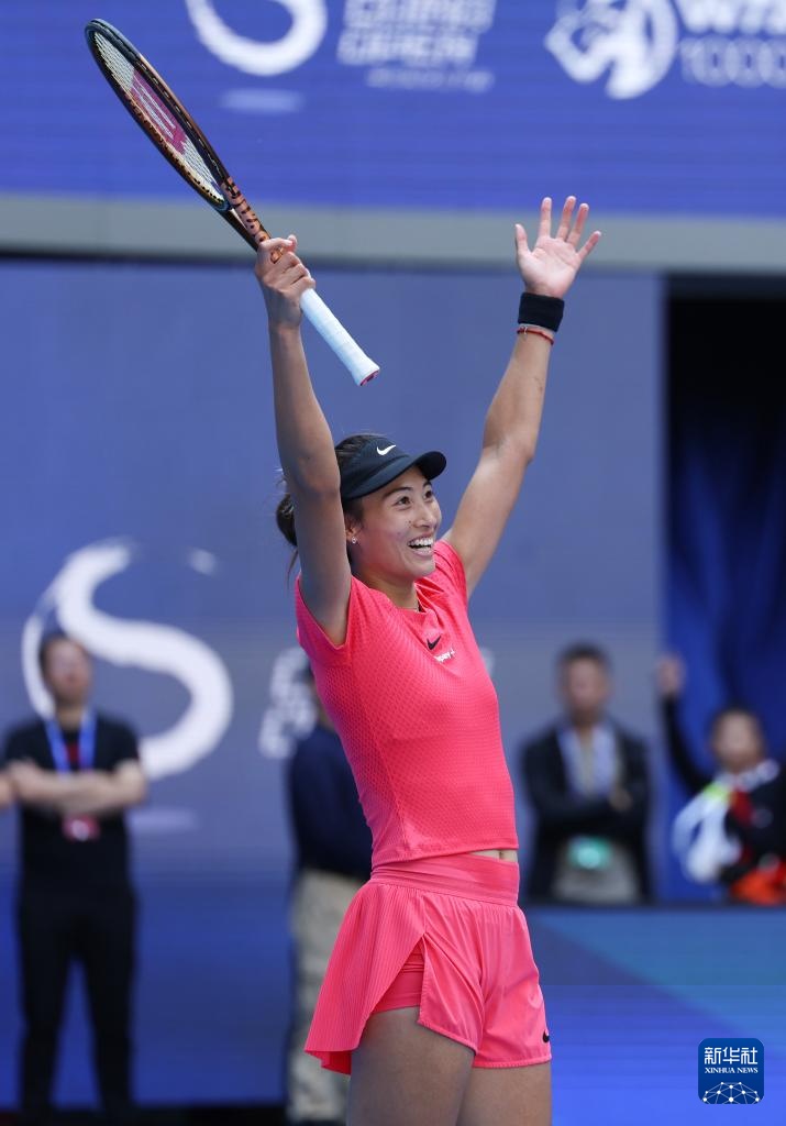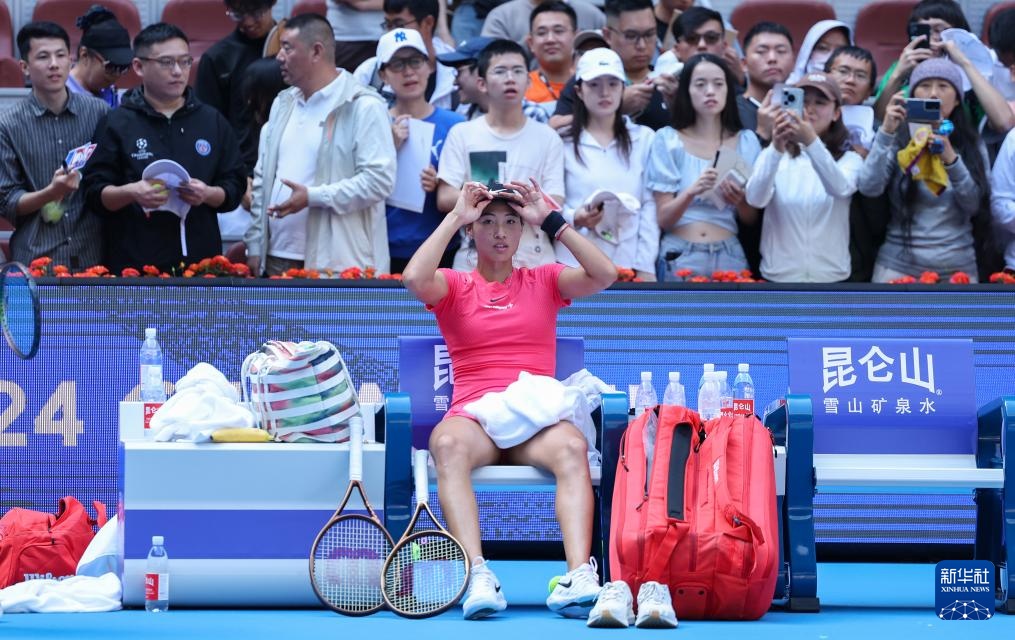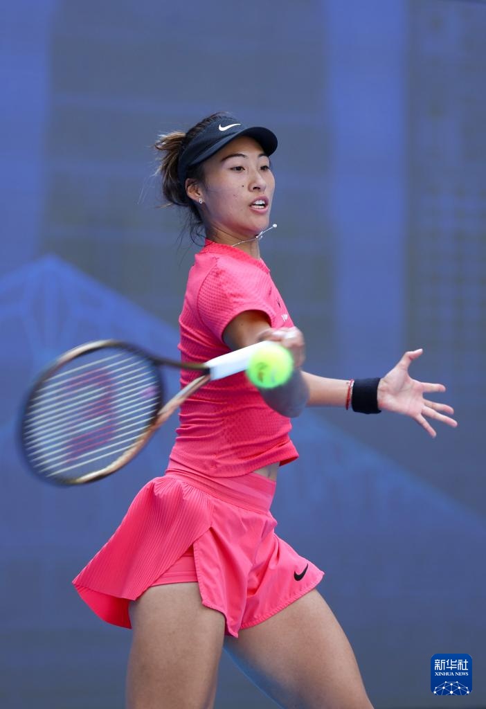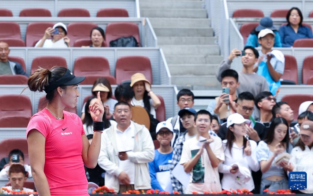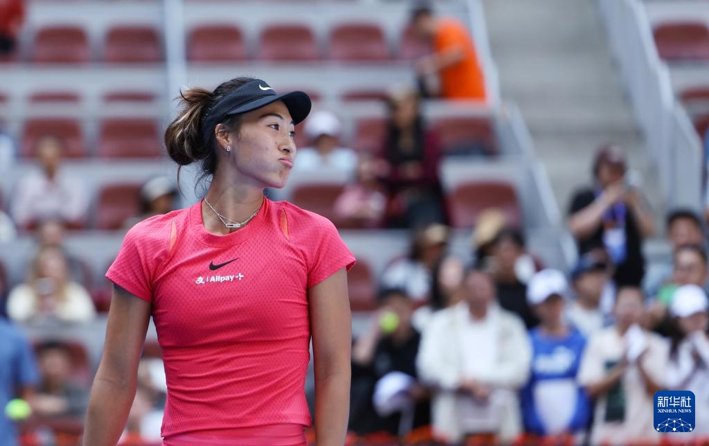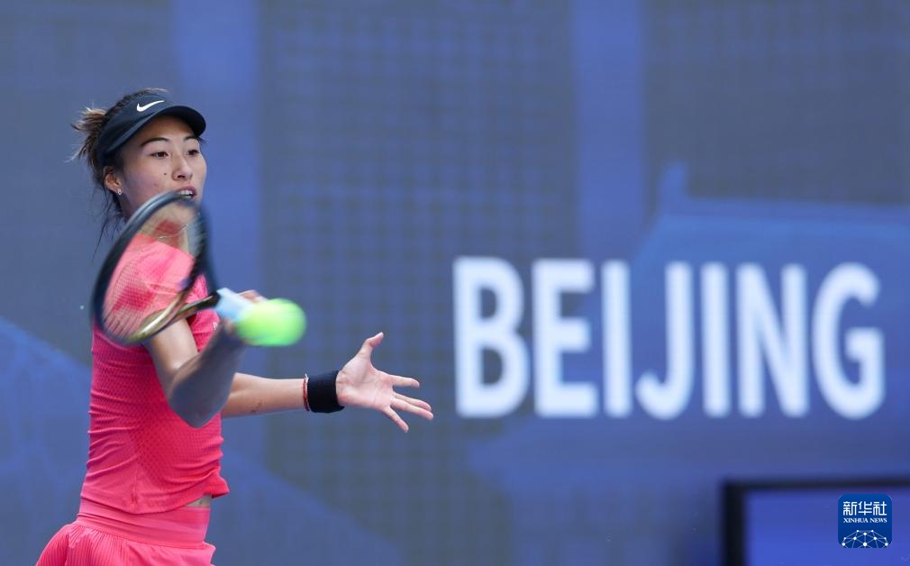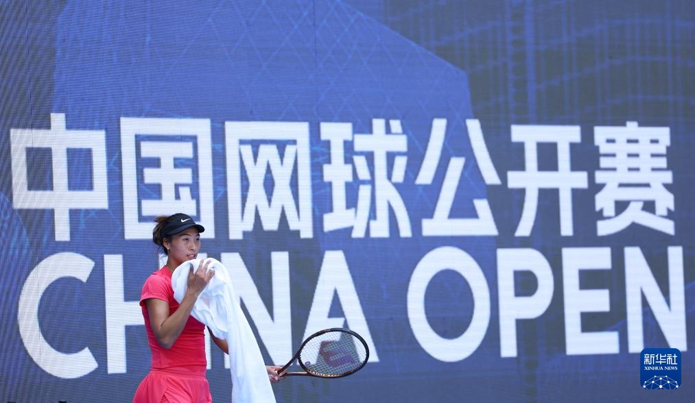 當日,中國選手鄭欽文在北京國家網球中心鉆石球場進行訓練,備戰2024中國網球公開賽。