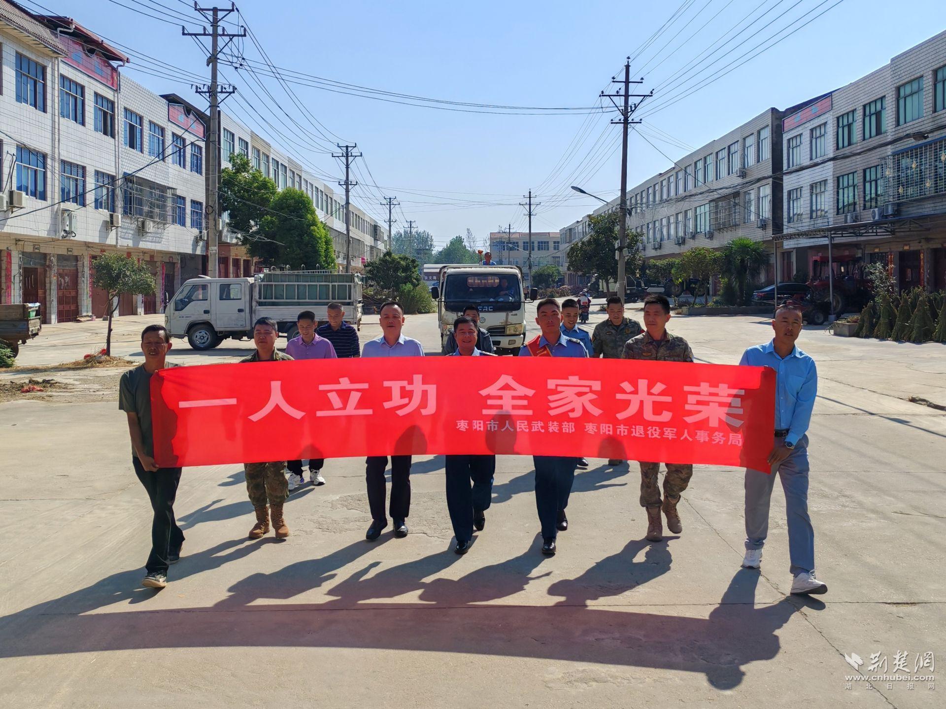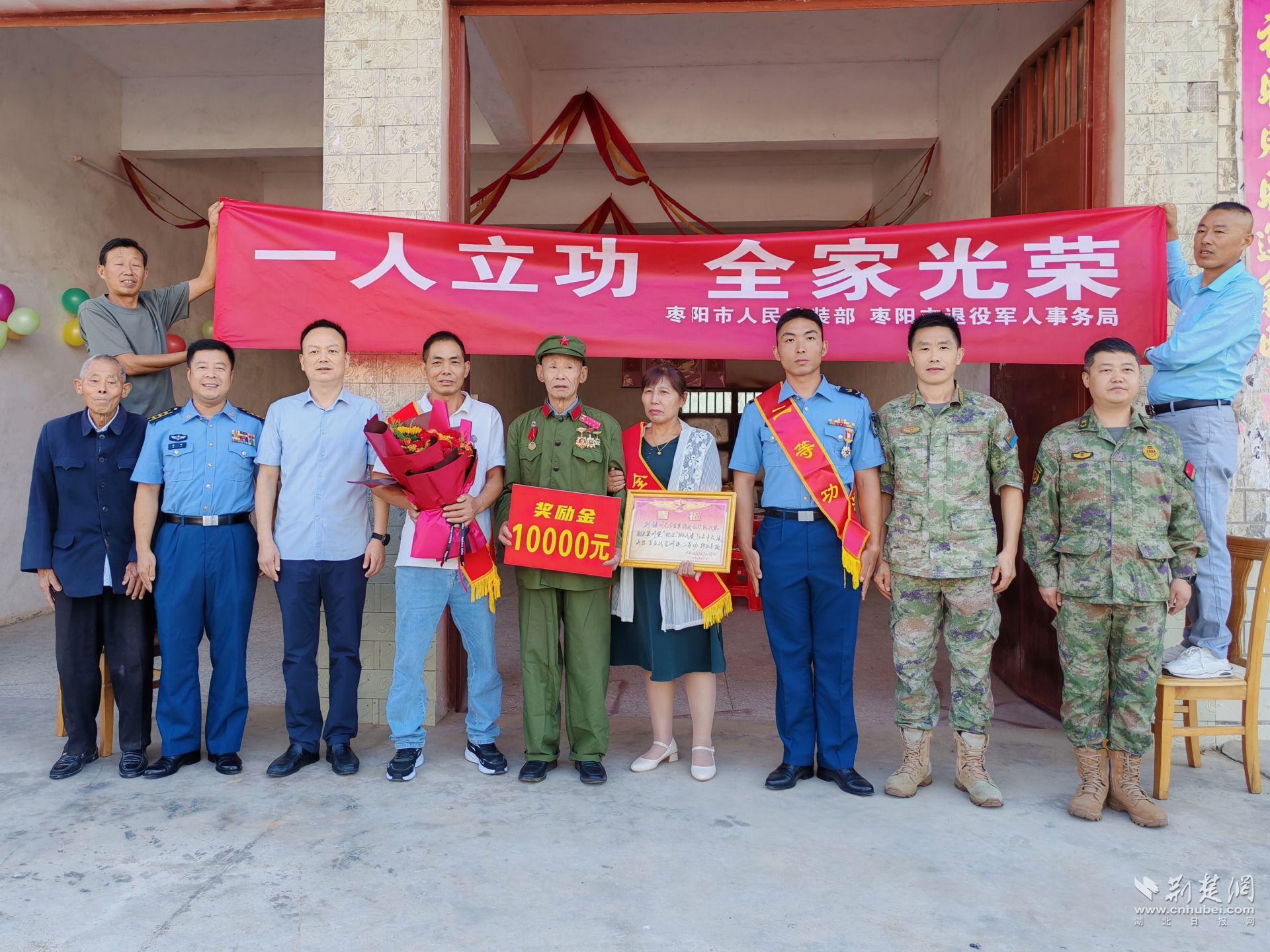 荊楚網(wǎng)(湖北日報網(wǎng))訊(通訊員 常夢星)9月24日,棗陽市人武部、市退役軍人事務(wù)局、中國人民解放軍某部組成送喜報分隊,來到琚灣鎮(zhèn)蔡西村,為榮立二等功的棗陽籍現(xiàn)役軍人劉疆家屬送喜報。劉疆的姥爺說:“孩子在部隊很爭氣,我高興得很咧!”