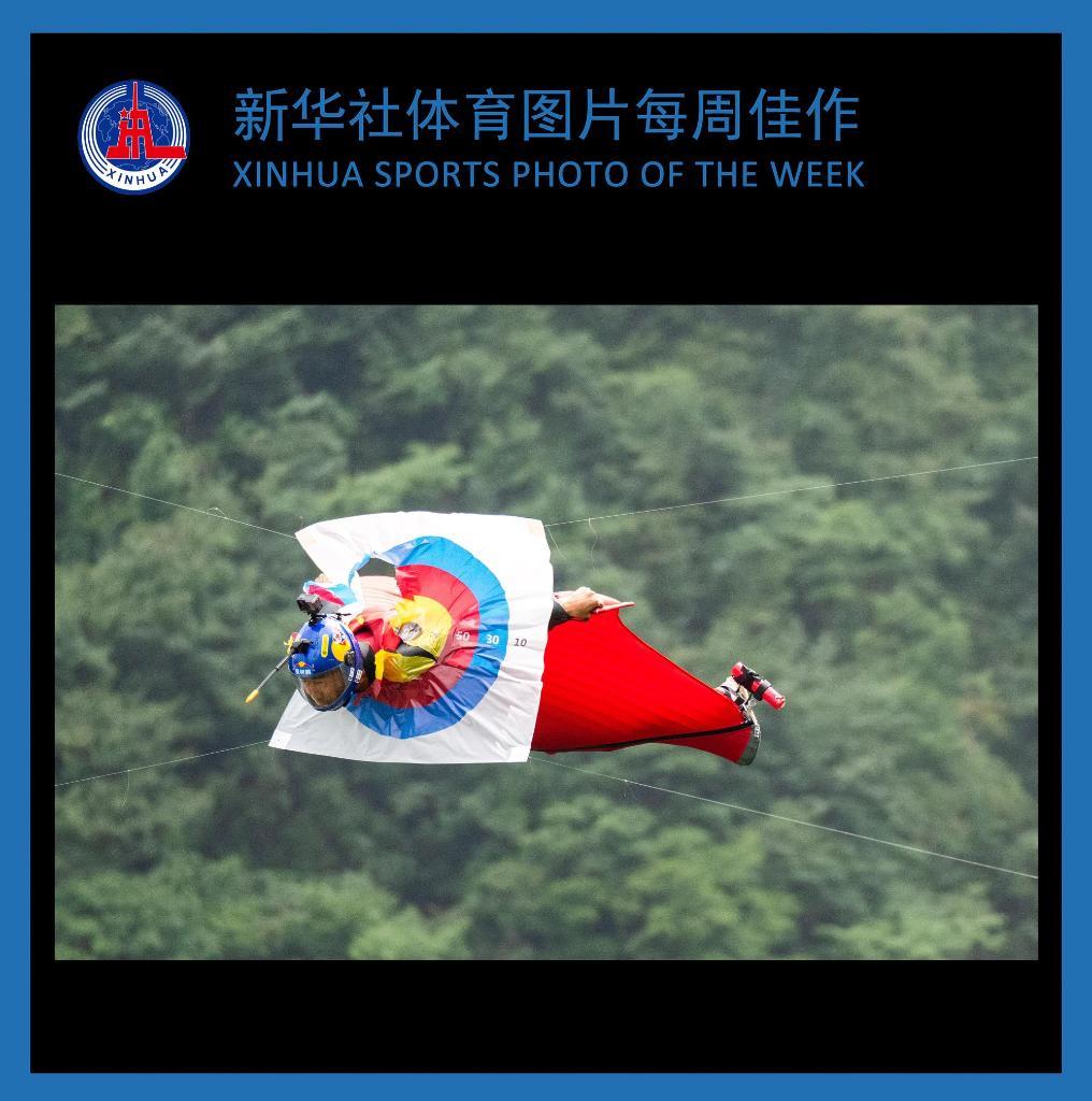 9月19日,中國選手張樹鵬在比賽中。當日,第十屆世界翼裝飛行聯盟翼裝飛行世錦賽精準穿靶賽決賽在張家界天門山舉行,中國選手張樹鵬獲得季軍。
