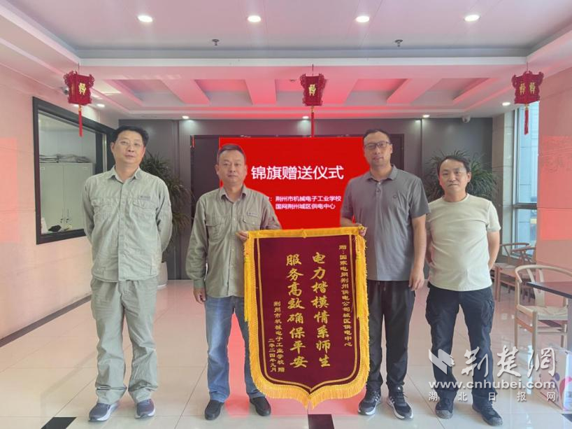 荊楚網(湖北日報網)訊(通訊員 何楠)“太感謝了,我代表學校感謝你們高效及時地為我們解決了大難題!”9月23日下午,荊州市機械電子工業學校的負責人將一面印著“電力楷模情系師生 服務高效確保平安”的錦旗,送到了國網荊州供電公司城區供電中心,對該中心盡職盡責、高效解決用電需求表達高度贊揚和誠摯感謝。