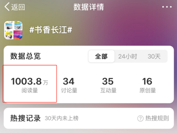 #書香長江#微博話題詞截至9月25日20:00已有1003.8萬閱讀量。