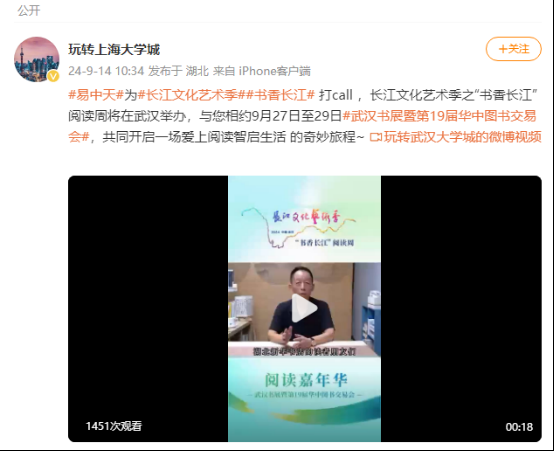 活動啟動前,人民日報、光明日報、中國日報、中國新聞社、新華網、中國新聞出版廣電報、湖北日報、楚天都市報?極目新聞、湖北之聲、長江云、長江日報、武漢電視臺、逐浪新聞等中央及省市主流媒體紛紛進行預告報道,學習強國、湖北發布、武漢發布、文明湖北、湖北文旅、青春湖北等平臺及政務新媒體紛紛轉發。