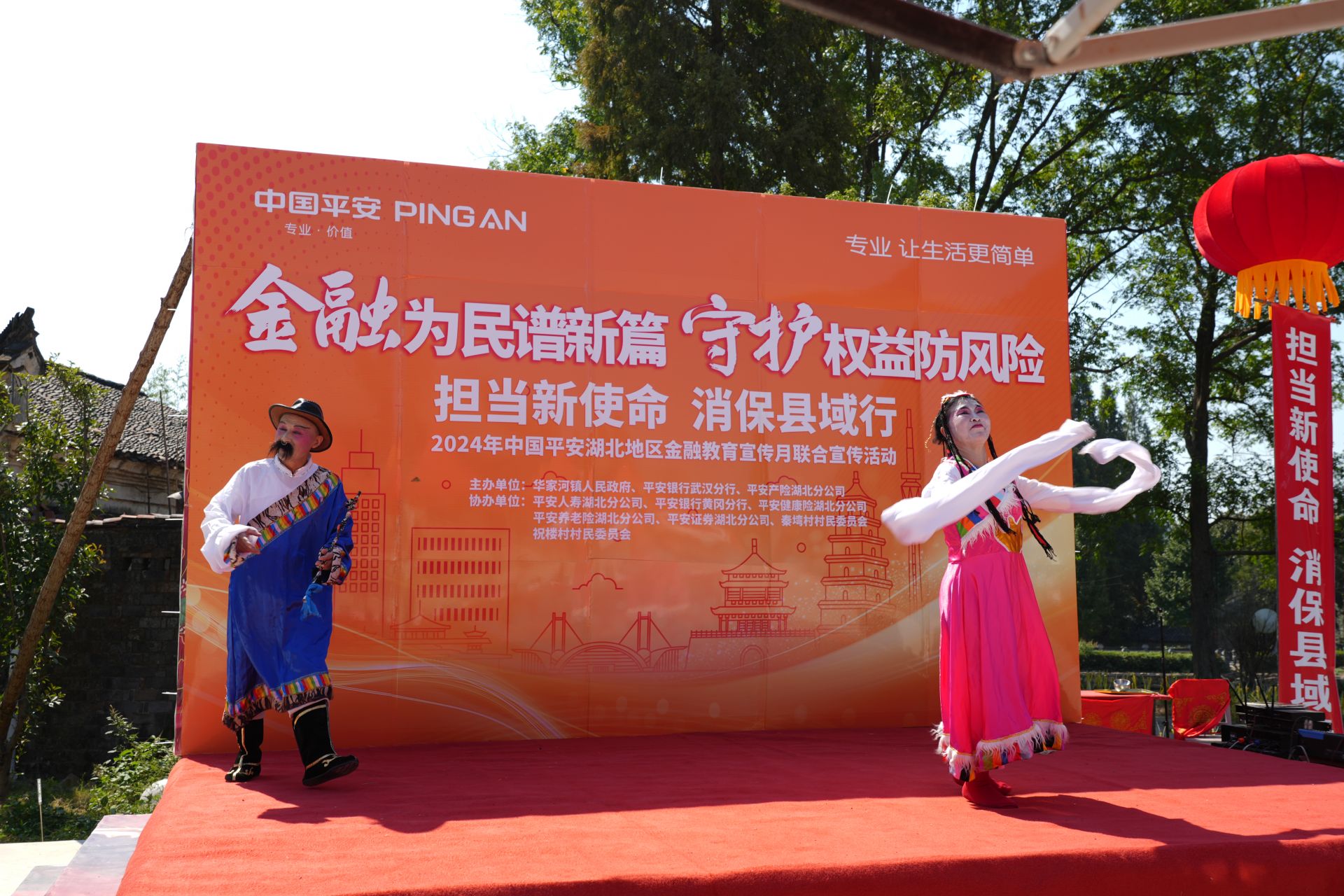 告別炎炎夏日,初入秋季。紅安縣祝家樓村黨群服務中心門口的大廣場熱鬧非凡,人頭攢動。廣場中心臺上正在上演著國家級非物質文化,中國平安為村民搭臺唱戲,送上了湖北省地方傳統戲劇楚劇。伴隨著胡琴、京二胡、三弦,一陣陣悅耳的旋律聲聲入耳,贏得現場村民掌聲不斷。與此同時,廣場兩側張貼的“金融為民譜新篇,守護權益防風險”消保宣傳口號也非常醒目,消保旗幟迎風飄揚。村民們一邊聽著戲曲,一邊學習了八大權利、金融反詐、個人信息保護等金融消保知識。悠揚的戲曲為村民現場帶來了一場視聽盛宴,同時工作人員也“潤物細無聲”的向在場的每個人傳遞了金融知識,受到了村民一致好評。