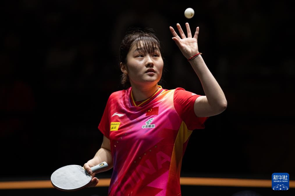 9月26日,中國選手王曉彤在比賽中發球。她3比0戰勝克羅地亞選手哈娜·阿拉波維奇,晉級下一輪。
