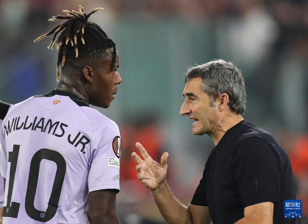 9月26日,畢爾巴鄂競(jìng)技隊(duì)主教練巴爾韋德(右)在場(chǎng)邊指導(dǎo)球員尼科·威廉姆斯。