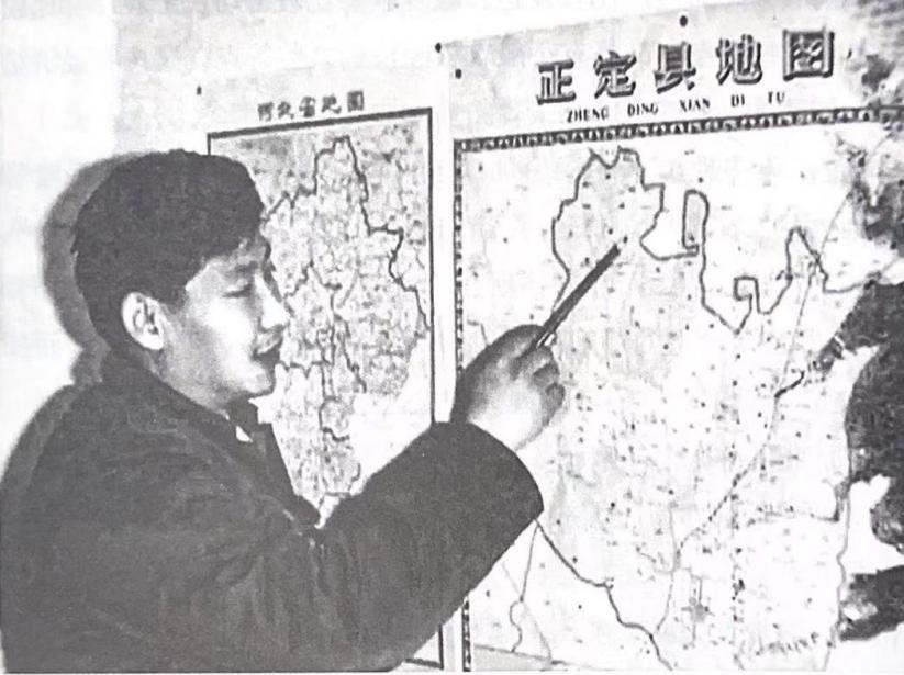 習近平在辦公室地圖前謀劃正定的發展。圖源:《讓群眾過上好日子——習近平正定足跡》