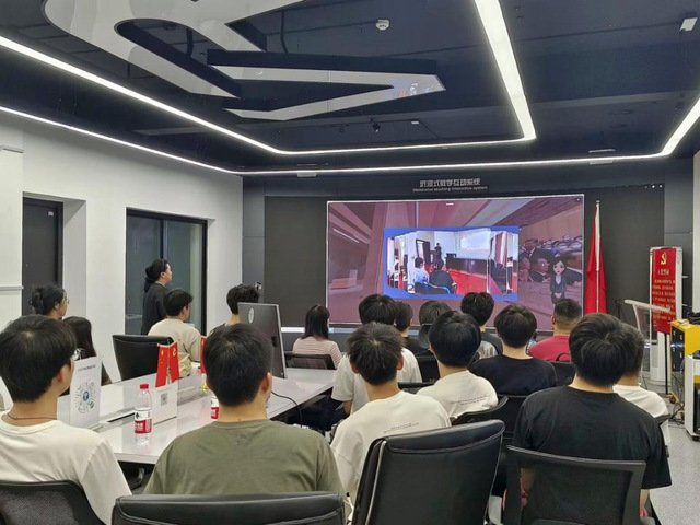 講解員是智能機器人,“走進”革命先烈的故居全景沉浸式云參觀,戴上VR智能眼鏡“騎行”在校園街道上……采風團在學院虛擬現(xiàn)實與智能交互創(chuàng)新基地,先后體驗了云端紅色教育基地、紅色校園騎行、“VR+黨建”作品互動、紅色場景增強現(xiàn)實等多個應(yīng)用場景。江漢大學人工智能學院黨委副書記王琦介紹,“VR+黨建”模式打破了時間和空間的限制,使師生能夠隨時隨地接受紅色教育,進一步增強了黨建學習的便捷性和實效性。通過二維碼掃描等平臺分享互動,使師生隨時學、就地看,足不出戶參觀具有強沉浸感、真實感的愛國主義教育基地,感受紅色歷史與文化,接受革命傳統(tǒng)教育。學院“VR+黨建”智慧平臺,已經(jīng)形成了高互動性、高參與度、高體驗感的黨員教育陣地,將使支部建在“線”上、支部建在“云端”,助推黨建工作“智慧升級”。