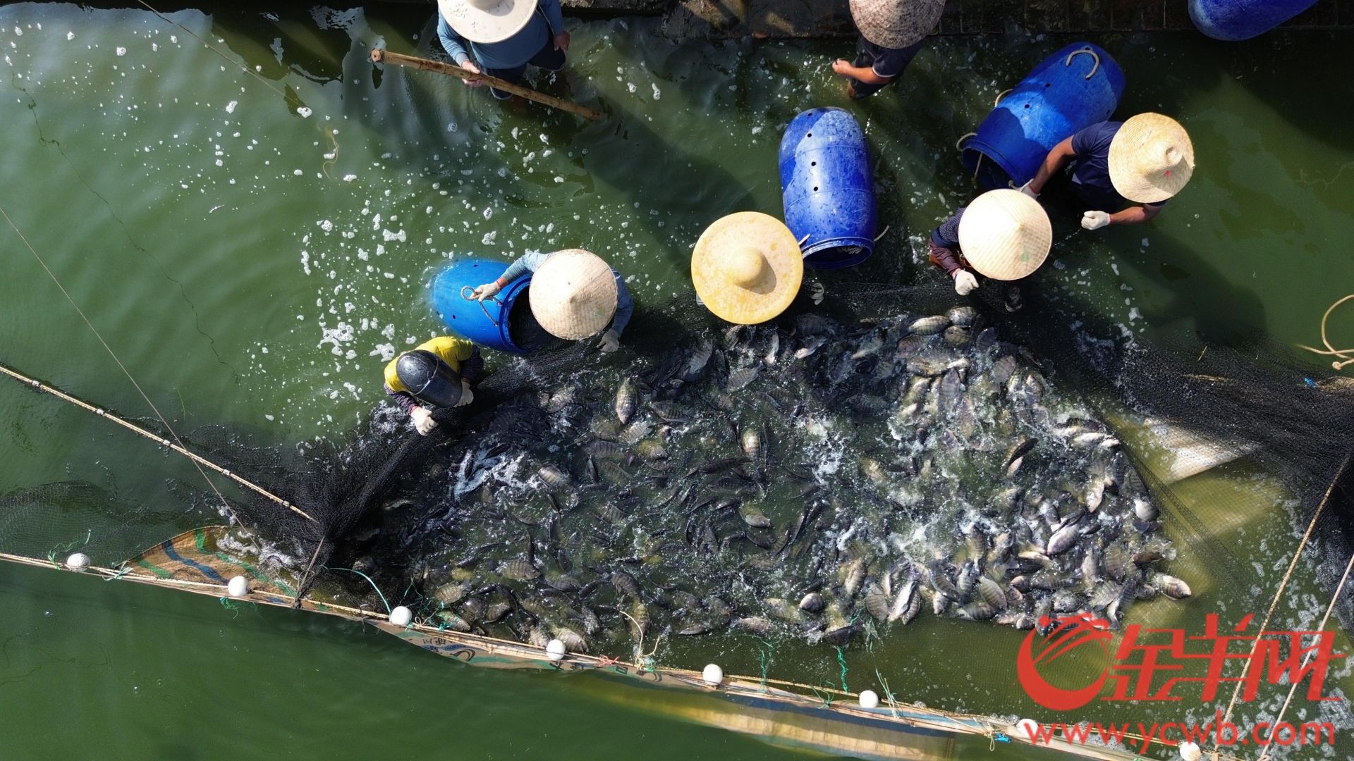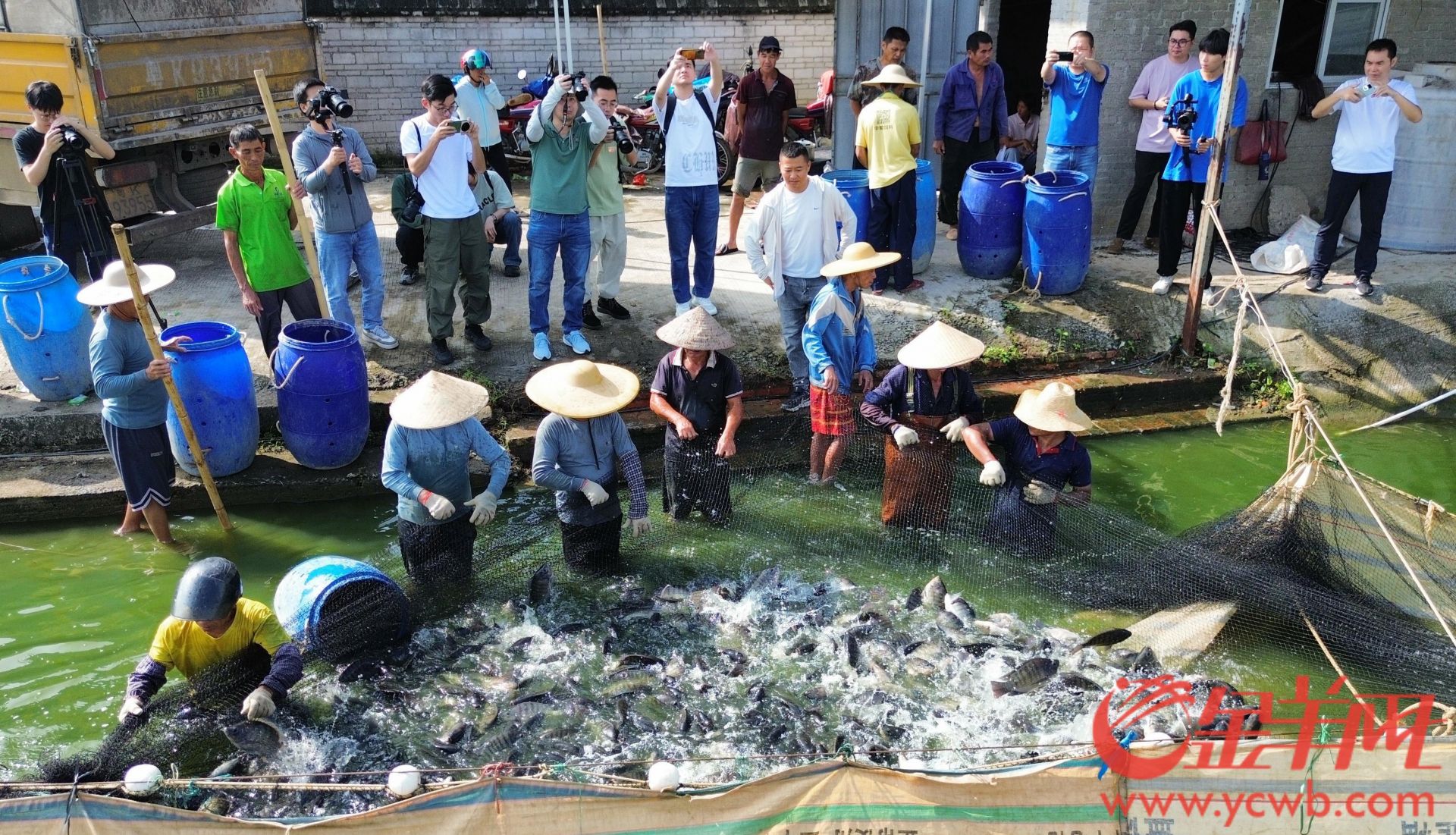 走進高州市石鼓鎮麗山村羅非魚養殖基地,起網、捕魚、裝貨,一尾尾羅非魚翻騰跳躍,魚躍人歡的豐收景象展現在眼前。