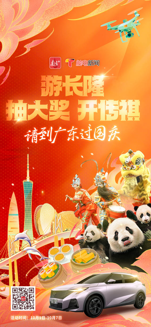 旅游興、百業(yè)旺。全省旅游發(fā)展大會吹響號角,廣東各行各業(yè)加油干、奮力拼。在國慶假期來臨之際,繼龍年春節(jié)“抽大獎”活動后,南方+客戶端、觸電新聞客戶端將煥新推出“請到廣東過國慶之游長隆、抽大獎、開傳祺”活動,七天假期,天天有驚喜。