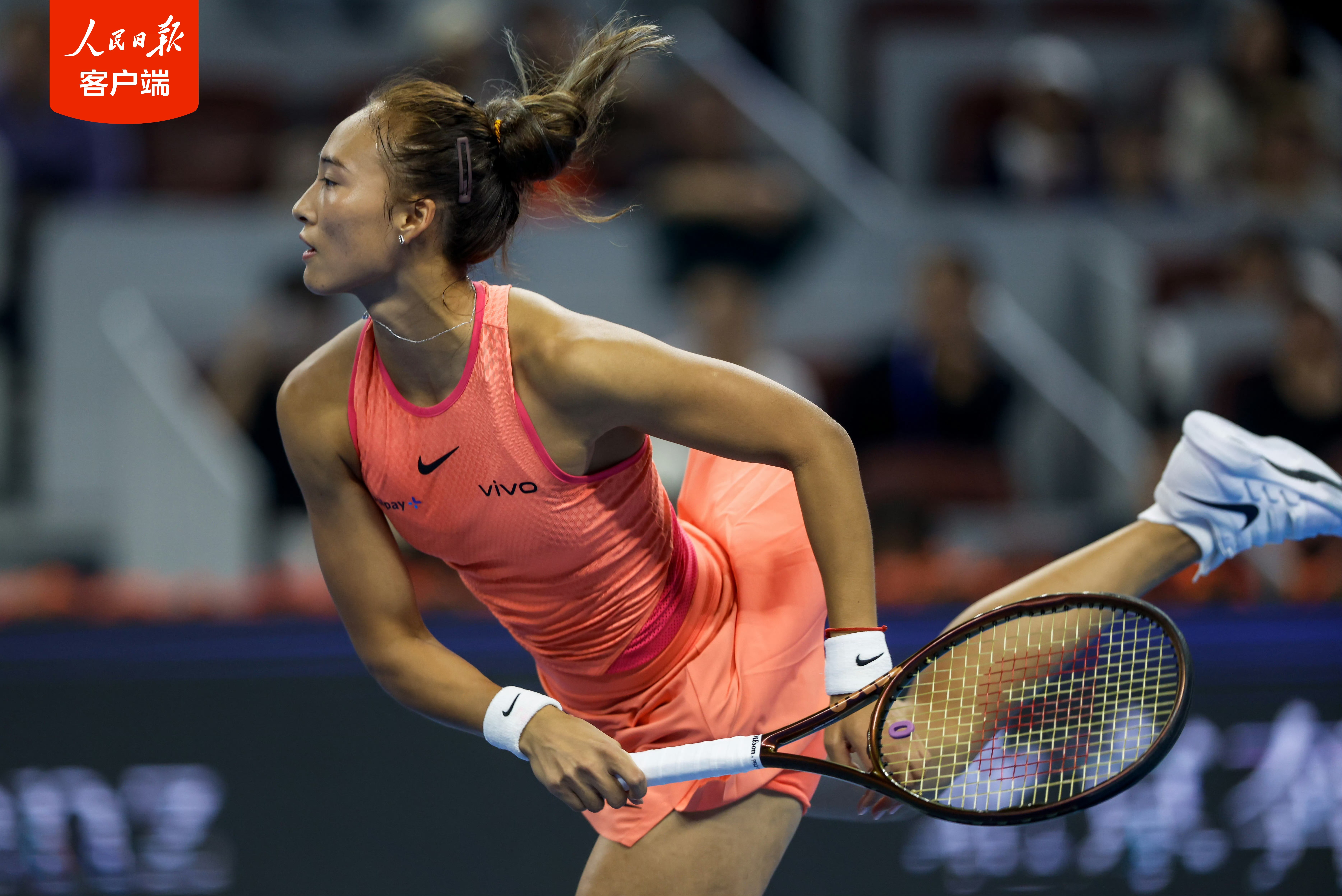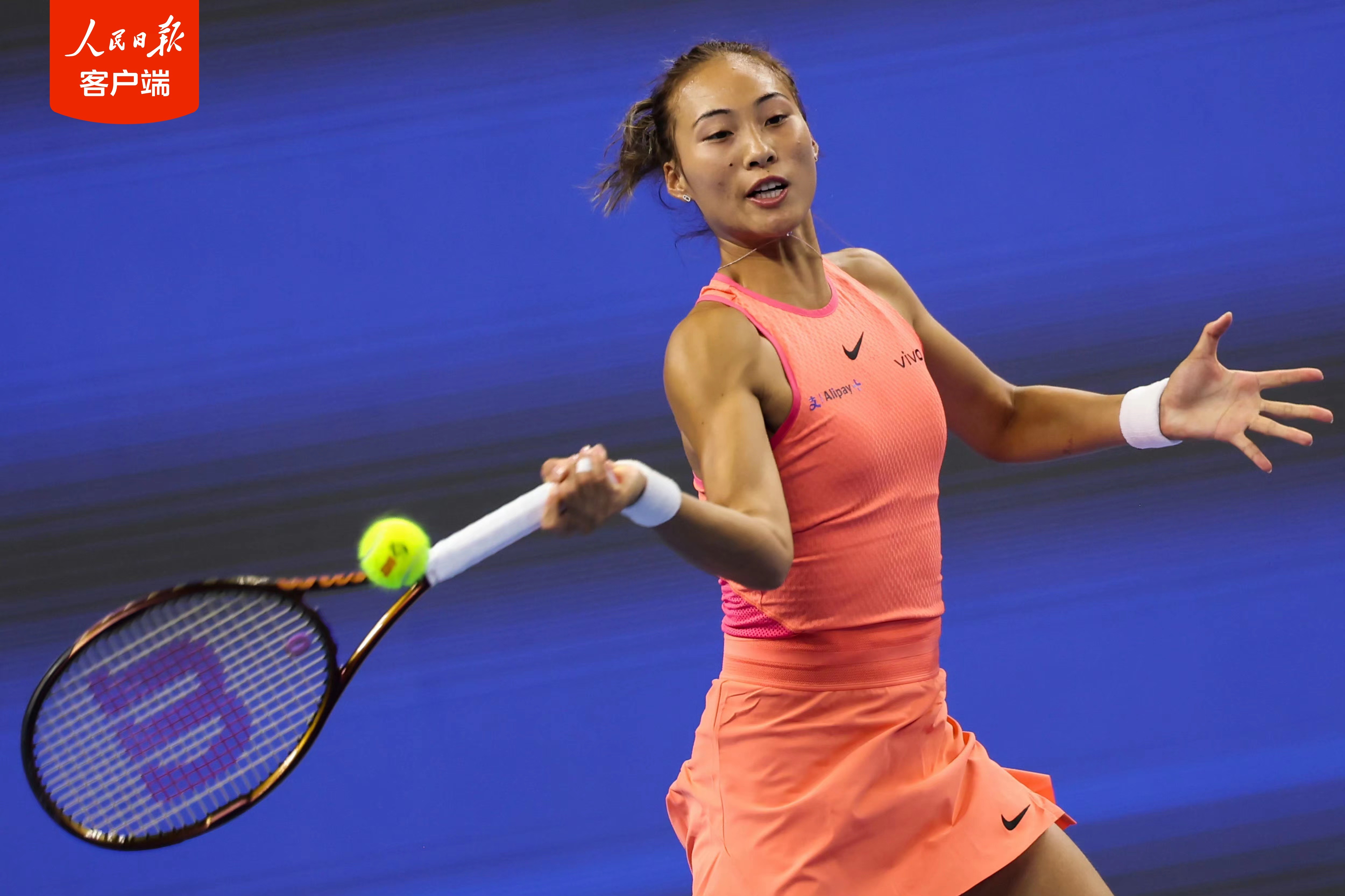 9月28日,在2024中國網球公開賽女單第二輪比賽中,賽會5號種子、中國球員鄭欽文狀態出色,以6-1、6-1輕松戰勝世界排名第71位的俄羅斯球員拉希莫娃,取得中網開門紅。全場比賽鄭欽文發球狀態在線,進攻手感火熱,沒有被對手拿到一個破發點。