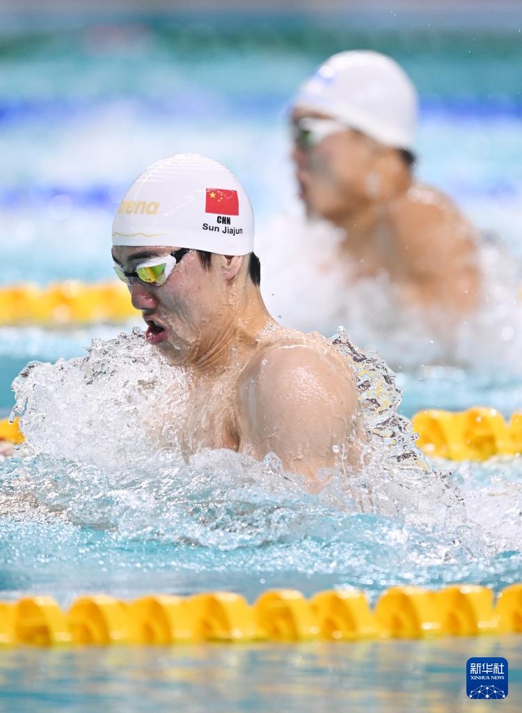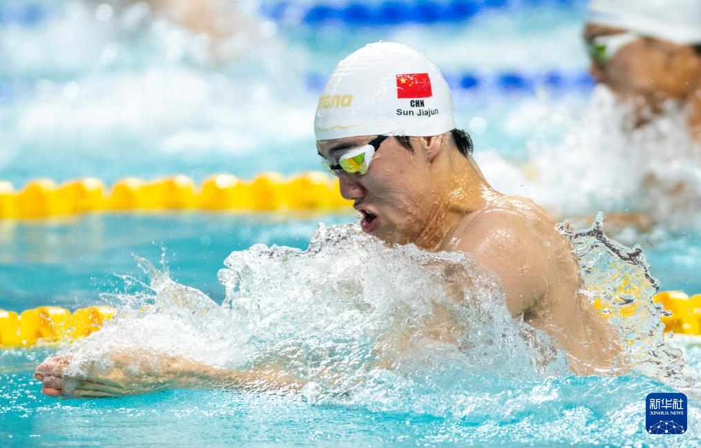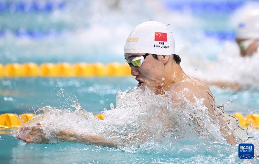 當日,在湖北武漢舉行的2024年全國游泳錦標賽(25米)男子50米蛙泳半決賽中,湖北浩沙隊選手孫佳俊以25秒72的成績晉級決賽。