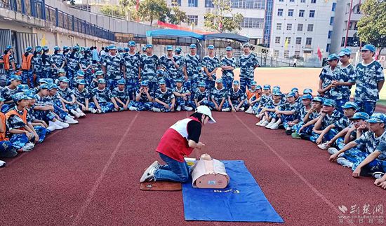 荊楚網(湖北日報網)訊(通訊員程曉林、李秀麗)9月28日,浠水縣紅十字會走進縣實驗高中,為該校參加軍訓的1000余名高一新生送去一場應急救護培訓課,利用學生軍訓開展生命教育,旨在普及應急救護知識、提高學生急救技能和保護生命健康的意識。