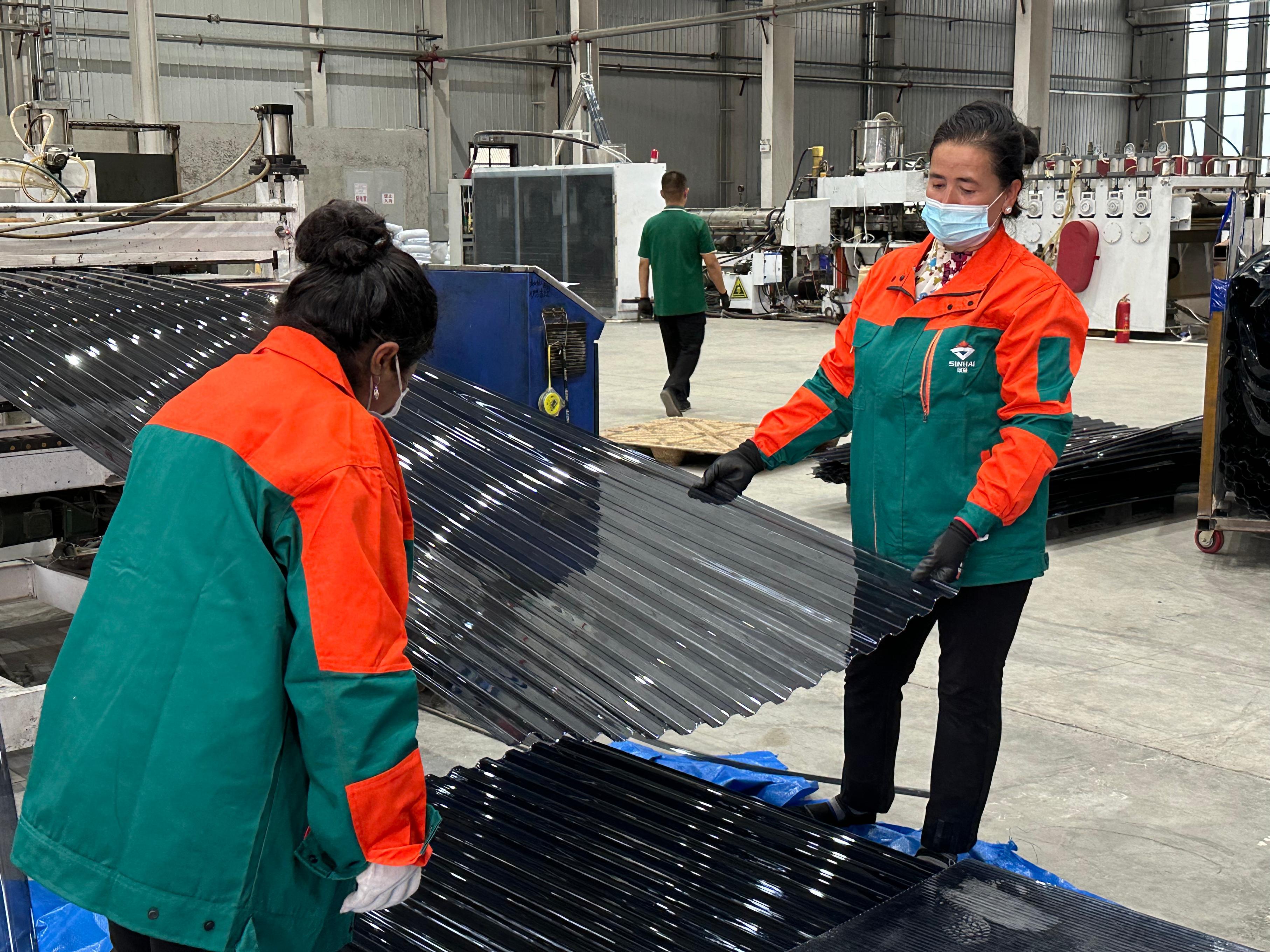 在欣海高分子新材料科技有限公司生產(chǎn)車間,工人正在加班加點(diǎn)生產(chǎn),用于交付哈薩克斯坦貨商剛下的一批訂單。