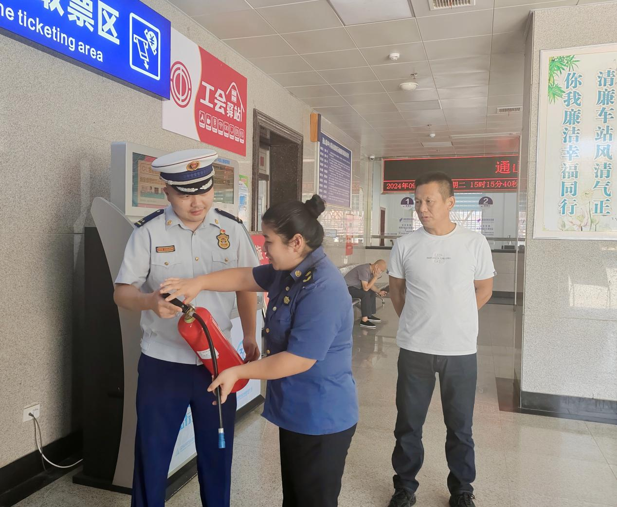 “會不會檢查滅火器,怎么查看是否是完好有效的”,咸寧市通山縣消防救援大隊消防監督員深入候車大廳、車站站臺、發電機房、消防控制室等重點部位,重點檢查客運站是否嚴格落實防火安全管理制度、重點崗位人員是否能熟練掌握消防設備、設施和安全操作規程、各種消防標識是否懸掛到位、安全疏散通道是否暢通、車輛是否配備滅火器材等。