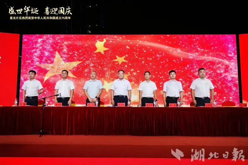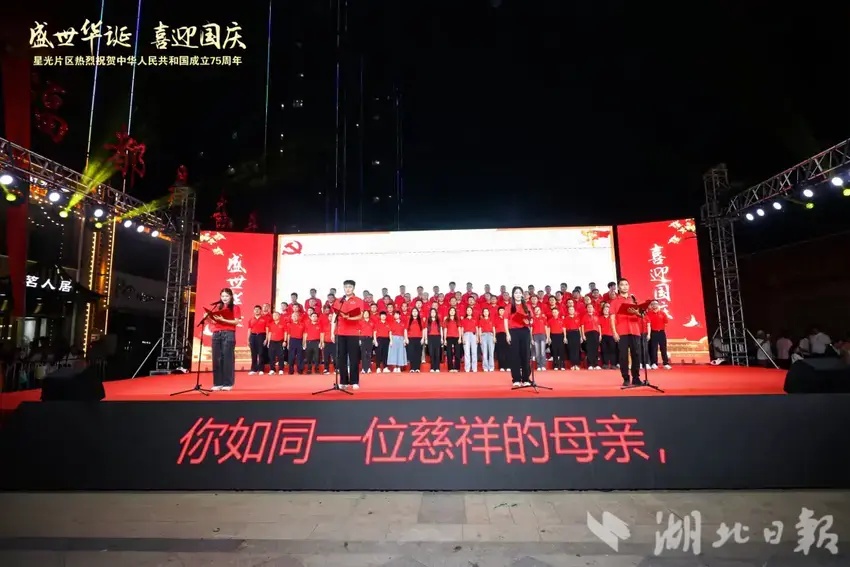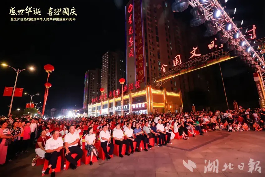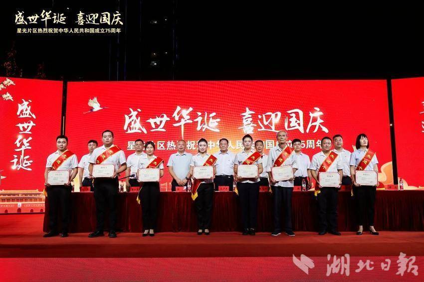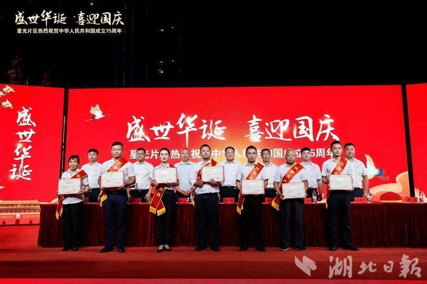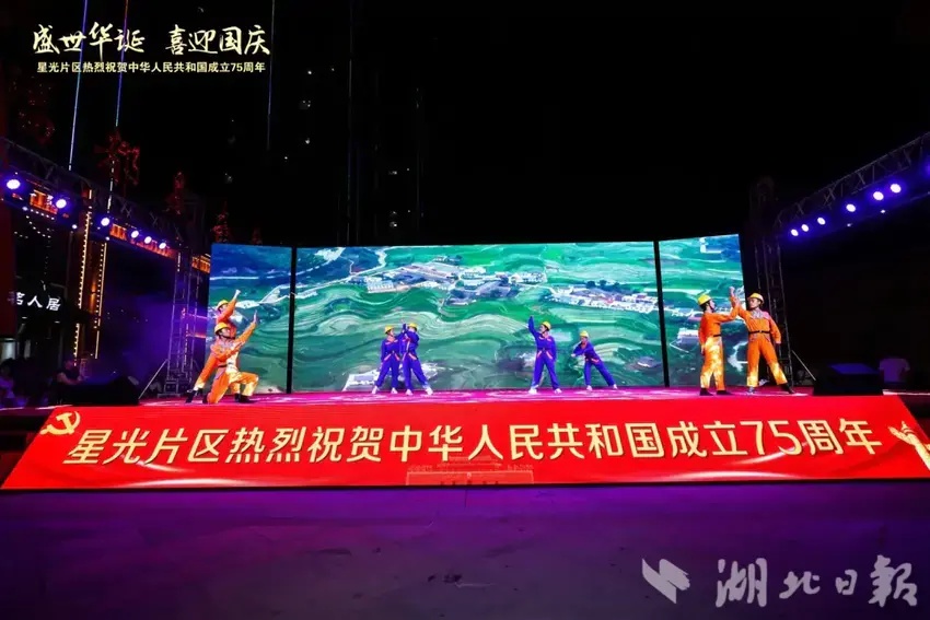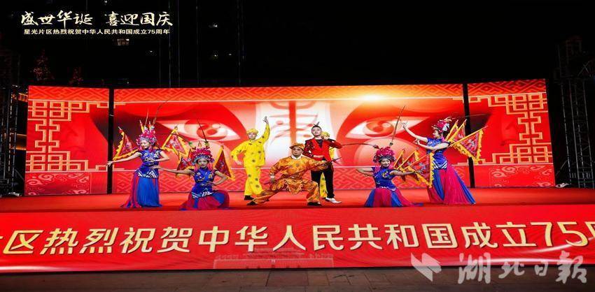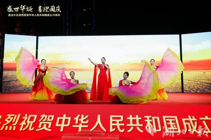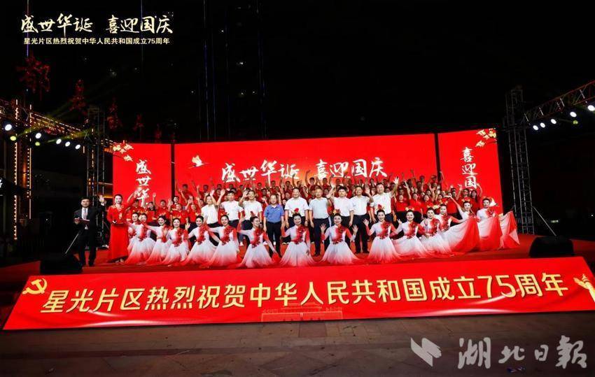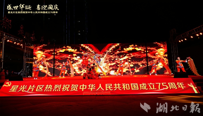 湖北日報訊(通訊員黨鵬杰)同心筑夢迎國慶,歡歌盛贊新時代。9月27日晚,一場喜慶熱鬧的慶祝新中國成立75周年總結表彰大會暨文藝匯演在武漢市蔡甸區奓山街星光片區星光商業街隆重舉行。星光片區各村黨員群眾、特邀嘉賓、湖北星光培訓基地學員以及社會各界人士觀看演出。