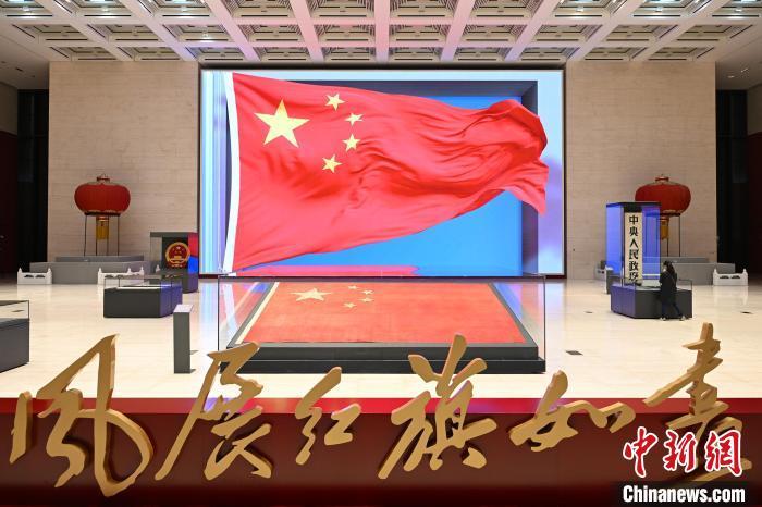 中新網北京9月29日電 (記者 應妮)中華人民共和國成立75周年之際,“風展紅旗如畫——館藏紅色經典文物展”29日在中國國家博物館開幕,系統展示了館藏革命年代的紅旗、新中國成立后的五星紅旗和黨旗、革命題材經典美術作品等紅色文物60余件,以及100張新時代以國旗為主題的高清照片,并首次輔以裸眼3D動態展示國旗。