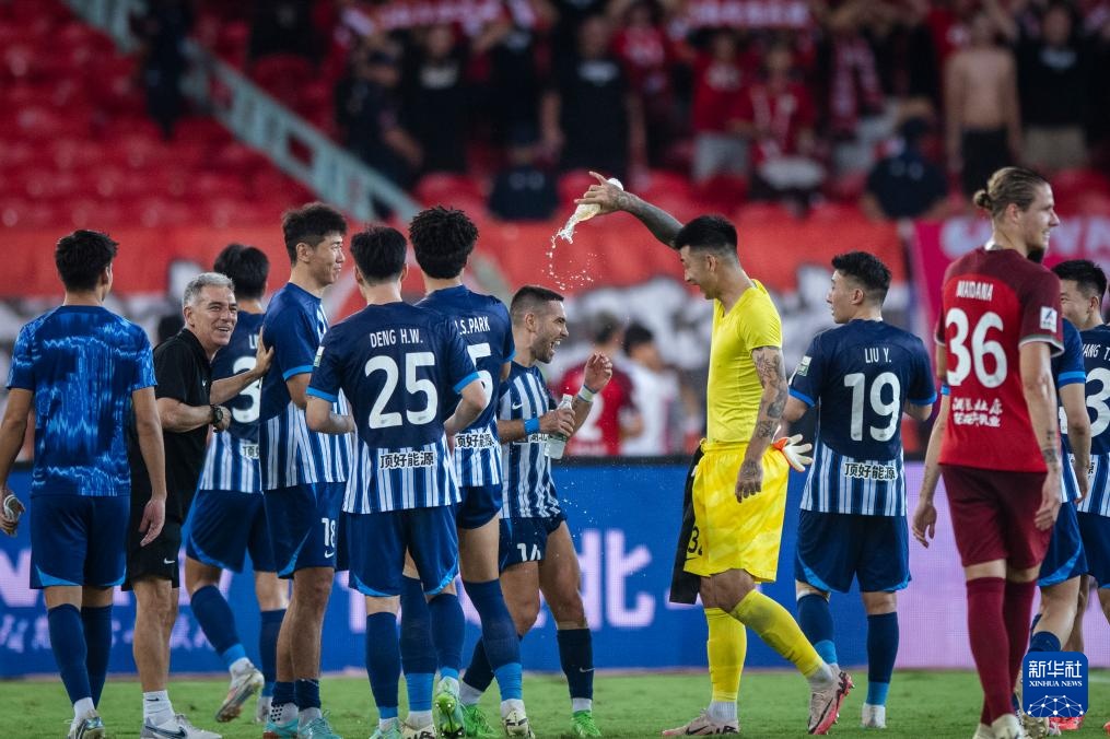 9月29日,武漢三鎮隊在比賽結束后慶祝。