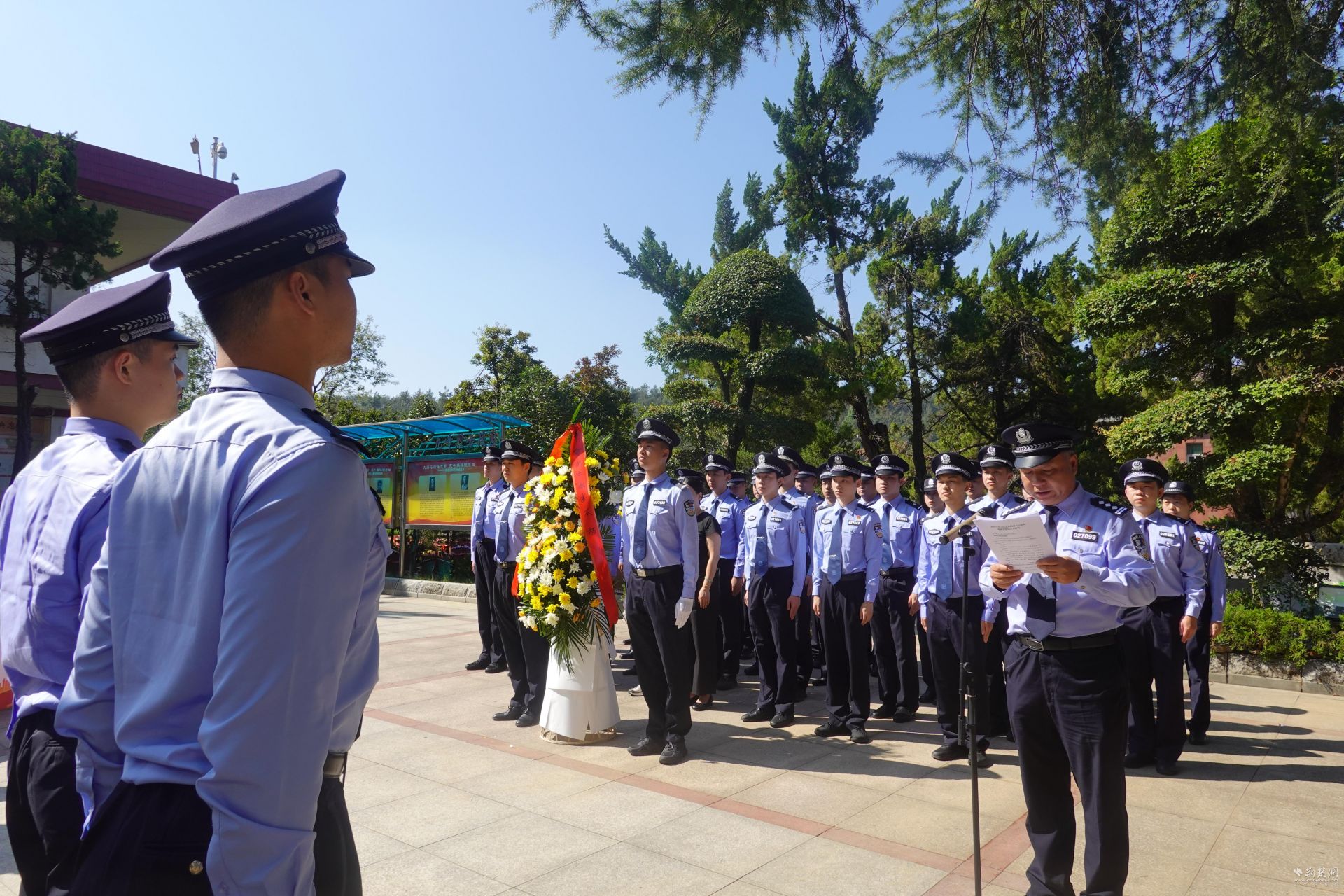 紀(jì)念碑前,漢興所青年民警許必超以書信的方式表達了自己和漢興所全體民輔警,對曾經(jīng)朝夕相處的好領(lǐng)導(dǎo)、好戰(zhàn)友邱建軍烈士的崇高敬意和深切緬懷,全體人員舉起右手,重溫了入警誓詞。