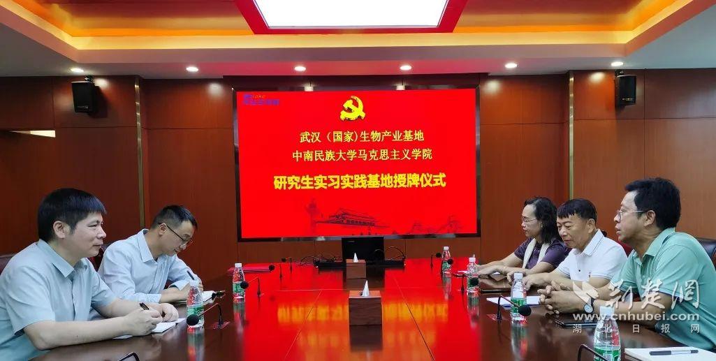 荊楚網(湖北日報網)訊 9月29日下午,光谷生物城與中南民族大學馬克思主義學院共建“研究生實習實踐基地”正式揭牌,中國光谷創新企業協會書記兼秘書長劉素君被聘為“實習實踐指導老師”。會上,大家就黨建理論結合實踐、人才培養及產學研合作等方面進行了深入交流。