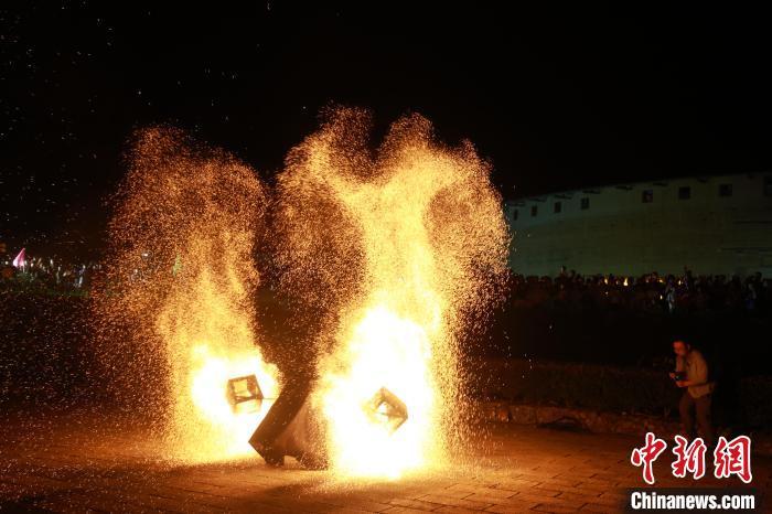 火壺表演秀來襲,熊熊火焰騰空飛舞。華安縣融媒體中心供圖