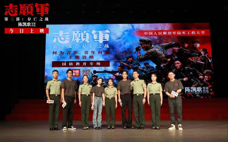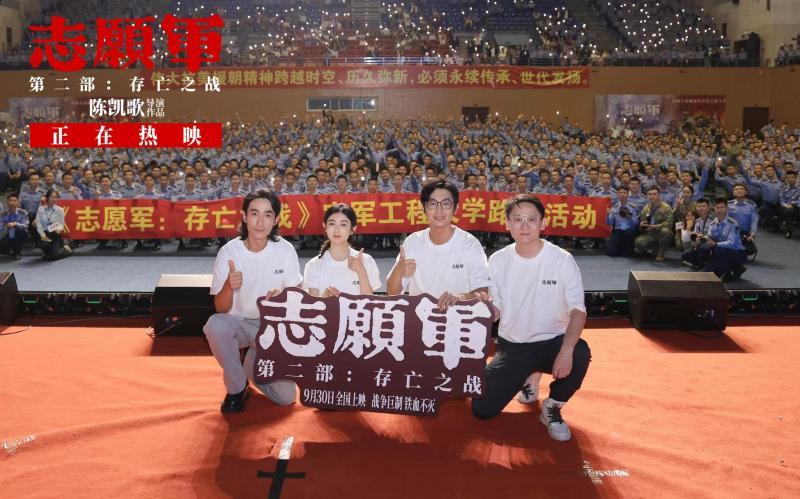 近日,正在全國熱映的電影《志愿軍:存亡之戰(zhàn)》攜手中國軍號開展的“何為青年·青年何畏”主題路演軍校活動結(jié)束。電影編劇張珂攜領(lǐng)銜主演朱一龍、張子楓、朱亞文走進(jìn)中國人民解放軍陸軍工程大學(xué)、中國人民解放軍空軍工程大學(xué)、中國人民解放軍火箭軍工程大學(xué)三所軍校,與數(shù)千青年官兵一起通過光影回望70多年前的崢嶸戰(zhàn)斗故事,并進(jìn)行了映后交流互動。