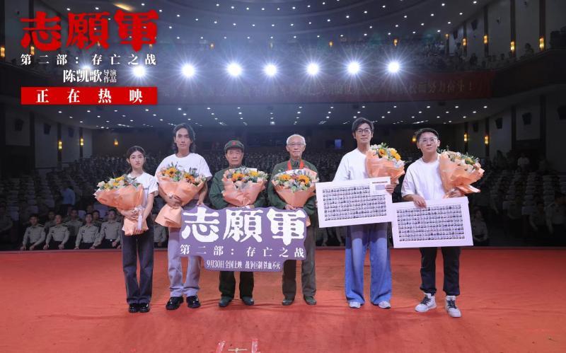 電影中,年輕志愿軍戰(zhàn)士為保家衛(wèi)國,筑起一道鋼鐵城墻;銀幕下,身著軍裝整齊坐著的,則是中國國防未來的中流砥柱。路演正逢“烈士紀(jì)念日”,現(xiàn)場主創(chuàng)與青年官兵們一起以特別的儀式,向一代代為國家獻(xiàn)出生命的烈士致敬,也向70多年前身在他鄉(xiāng)的志愿軍英烈們,獻(xiàn)上最誠摯的敬意。