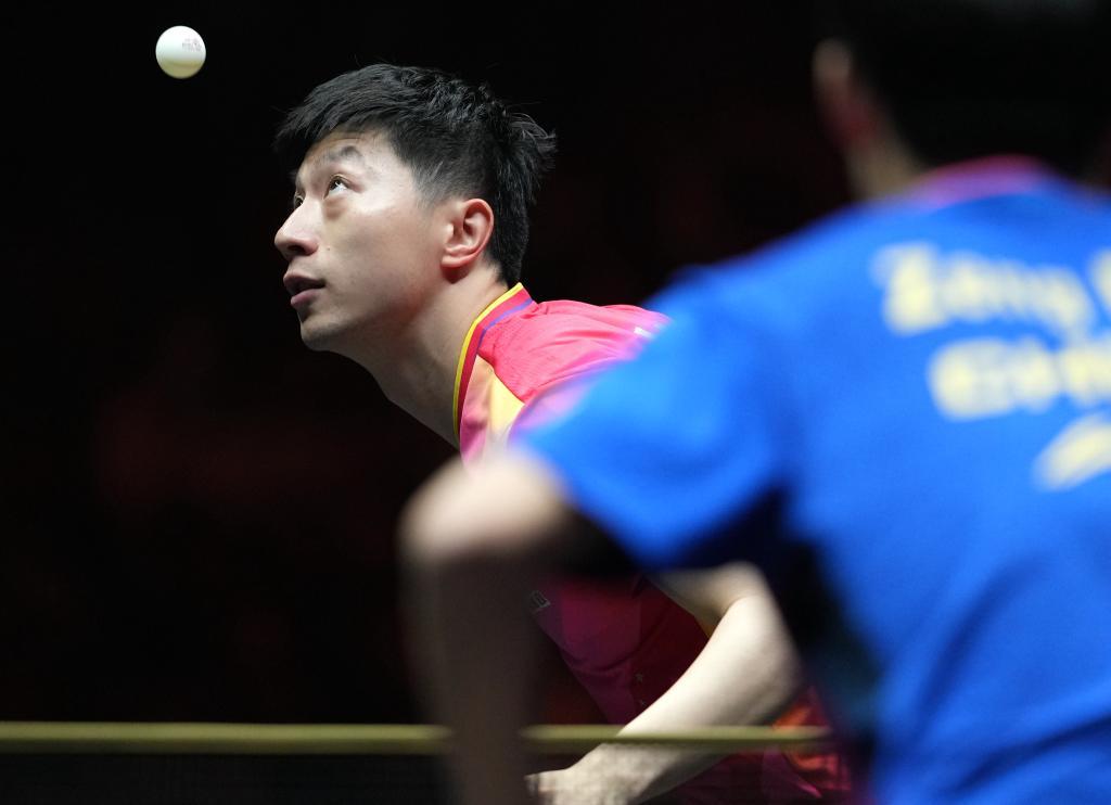 10月2日,馬龍在比賽中發球。新華社記者 張晨霖 攝