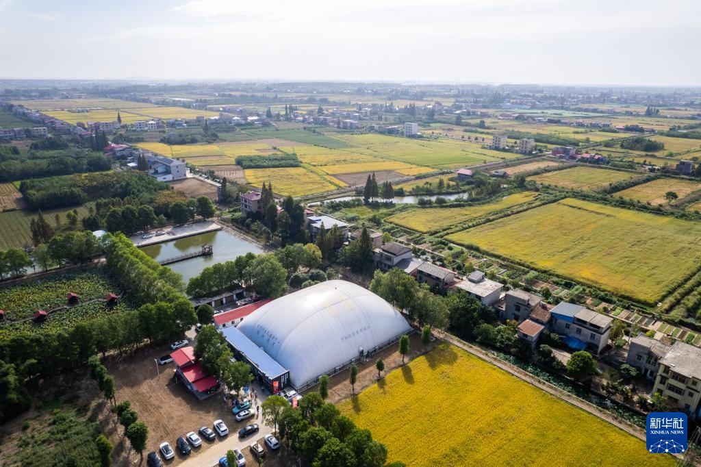 這是10月2日在南洲鎮南洲村拍攝的氣膜體育館(無人機照片)。