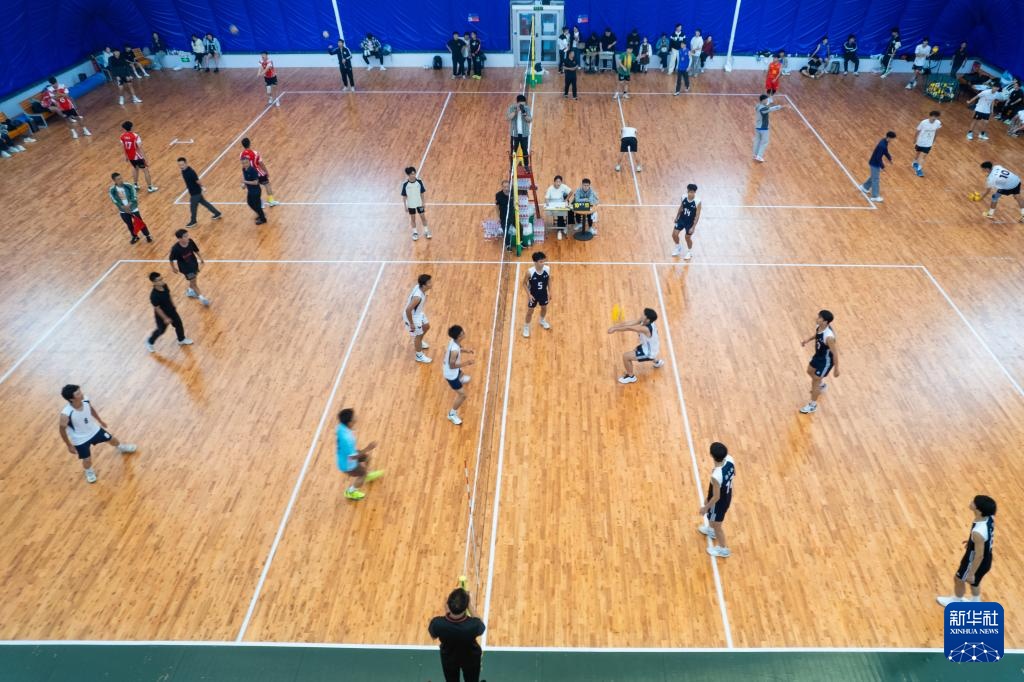 這是10月2日在南洲鎮南洲村氣膜體育館拍攝的比賽現場(無人機照片)。
