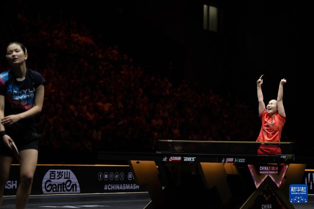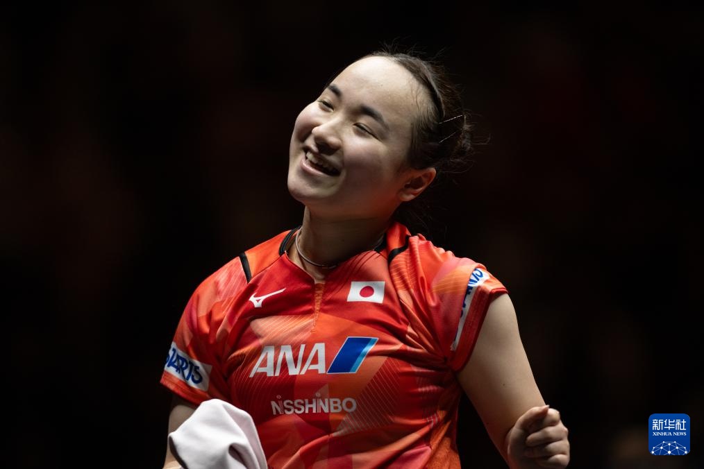 10月3日,伊藤美誠(右)在獲勝后慶祝。